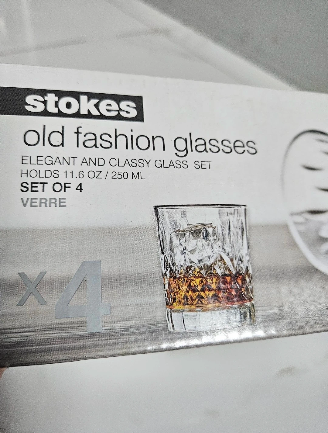 Brand new set of 4 Stokes dublin old fashion glasses. These glasses are elegant and classy, perfect for any occasion. They hold 11.6 oz / 250 ml. The set is brand new and comes in its original box!