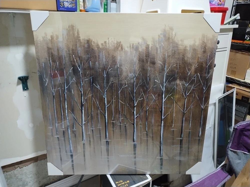 1. Here's a lovely piece of canvas wall art featuring an abstract depiction of trees. It would look great in any room 36'*36' oversized ---$45 (new)