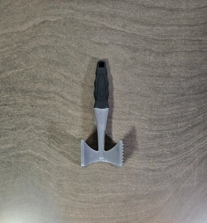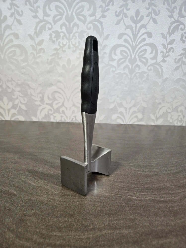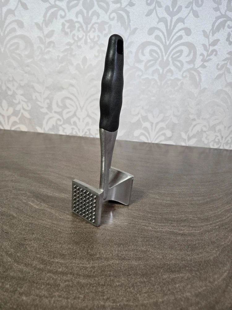 Good condition. Has a metal head with textured surfaces for tenderizing or flattening meats. Cross-posted.