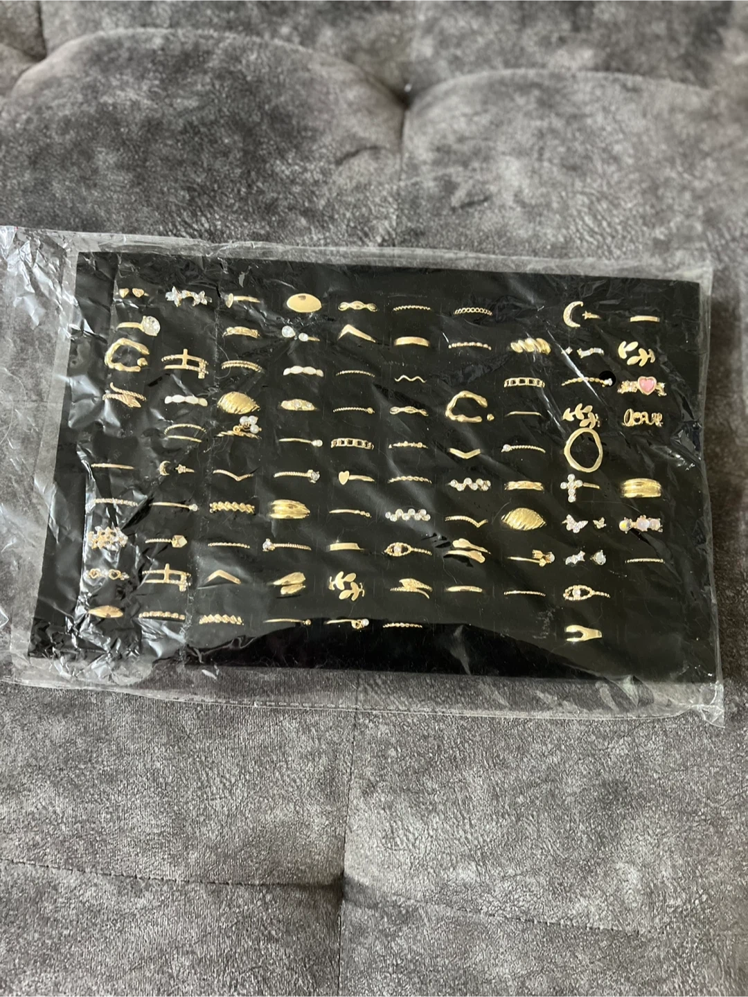 Selling a set of gold rings. They are brand new and have never been worn. A variety of styles are included in the set.