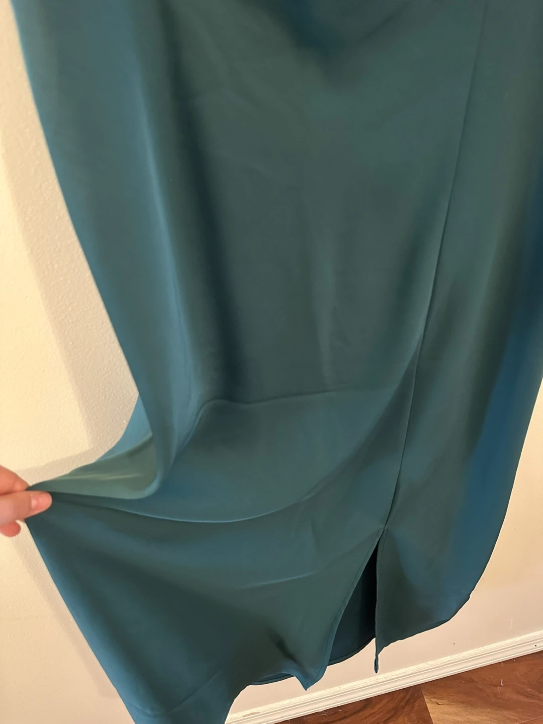 Selling a green satin cocktail dress. It's in great condition. The dress is a beautiful shade of teal and would be perfect for a night out or a special occasion