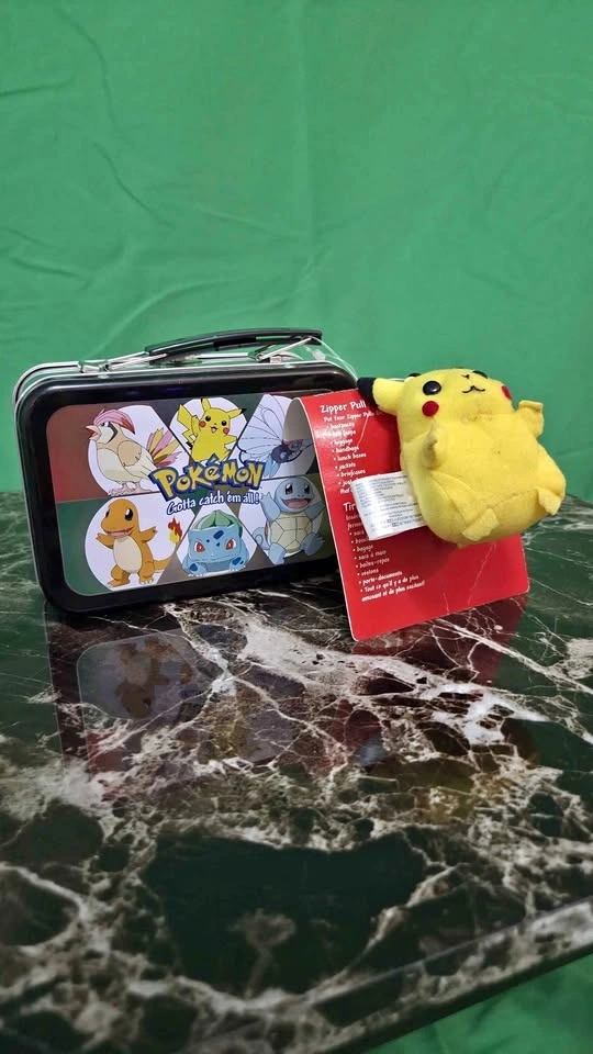 Rare Pokémon collectible lunchbox from the 90's with pikachu plush keychain clip. Excellent condition, light minimal scratches. Meet up in Airdrie, Cash only.