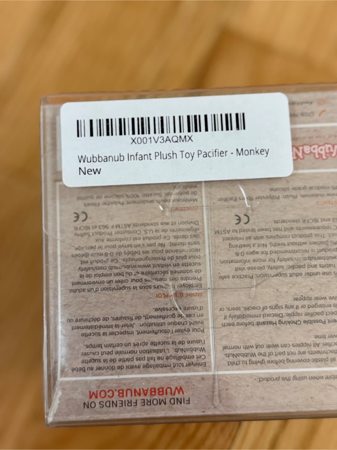 This WubbaNub infant pacifier plush toy is brand new and still in its original packaging! The plush toy is a cute monkey.