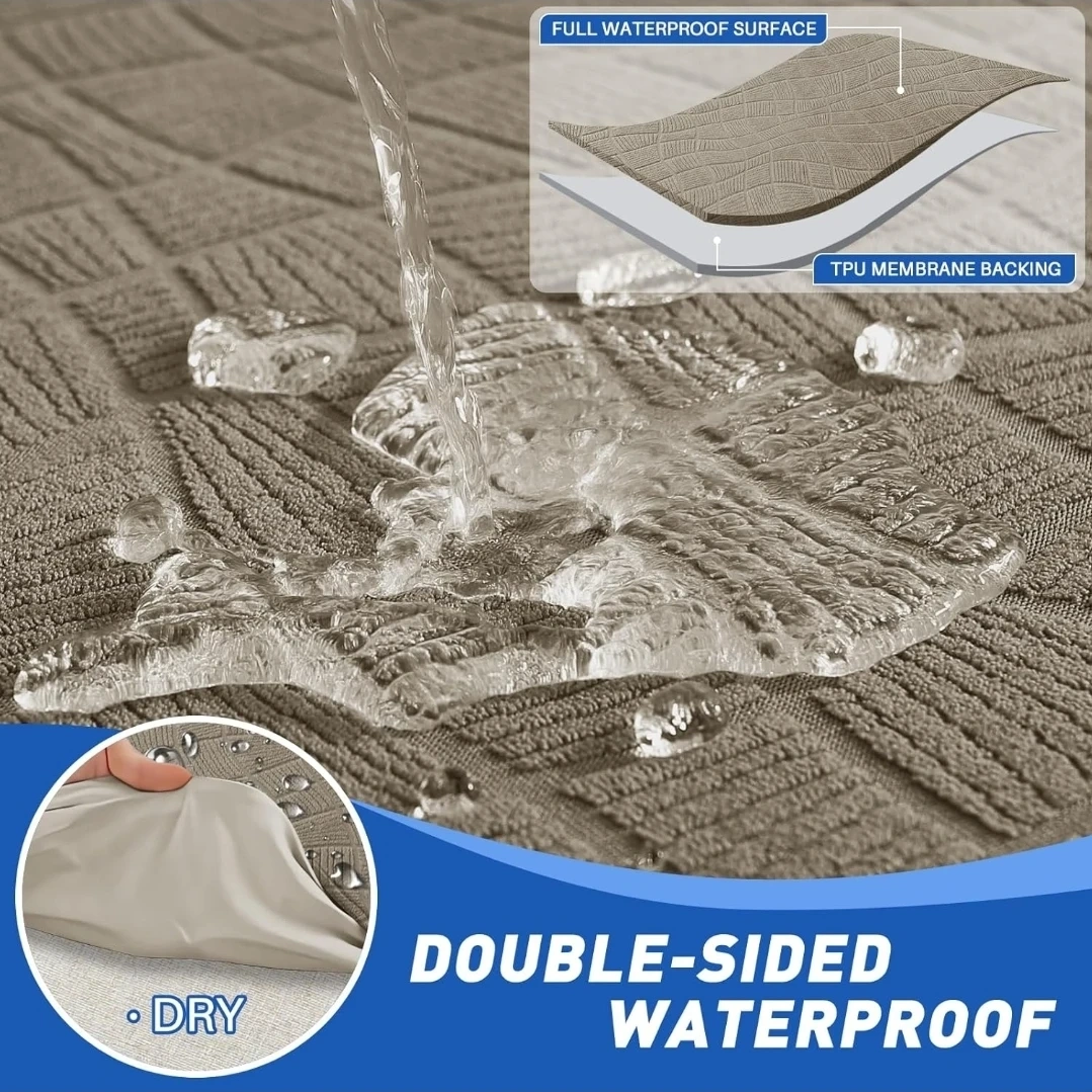 This MAXIJIN recliner cover is designed to stay in place, so you don't have to constantly readjust it! It's waterproof, with a double-sided design and TPU membrane backing.
