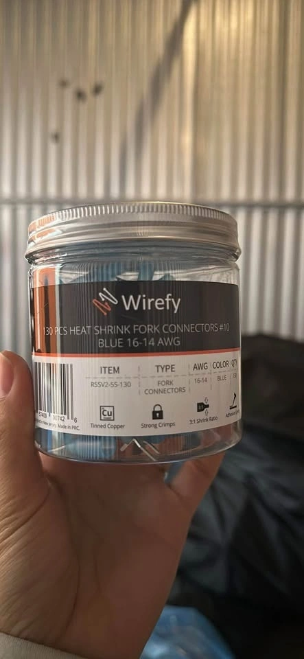 New in box. Wirefy Heat Shrink Fork Connectors #10 - Marine Grade Terminals - Blue 16-14 Gauge | Universal Wire Connectors for Wiring 130 PCS