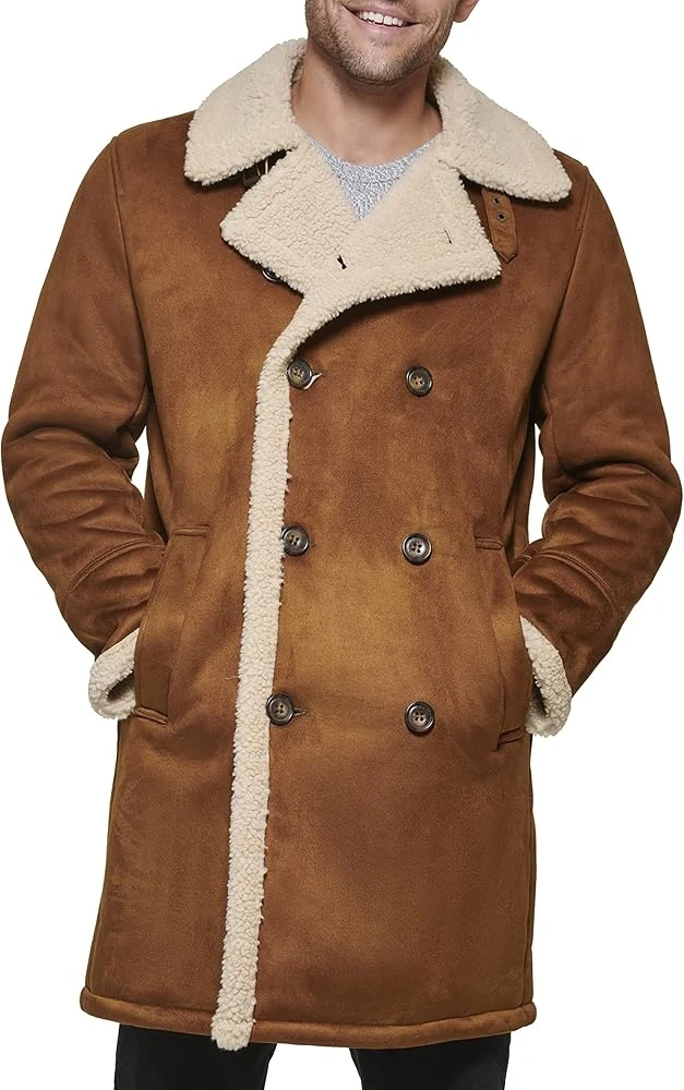 Here's a stylish Simons coat that's perfect for staying warm and looking sharp! It's a faux suede coat with sherpa lining, offering a cozy and fashionable look. The coat features a double-breasted design with button closures and a classic silhouette. Great for adding a touch of sophistication to your winter wardrobe!