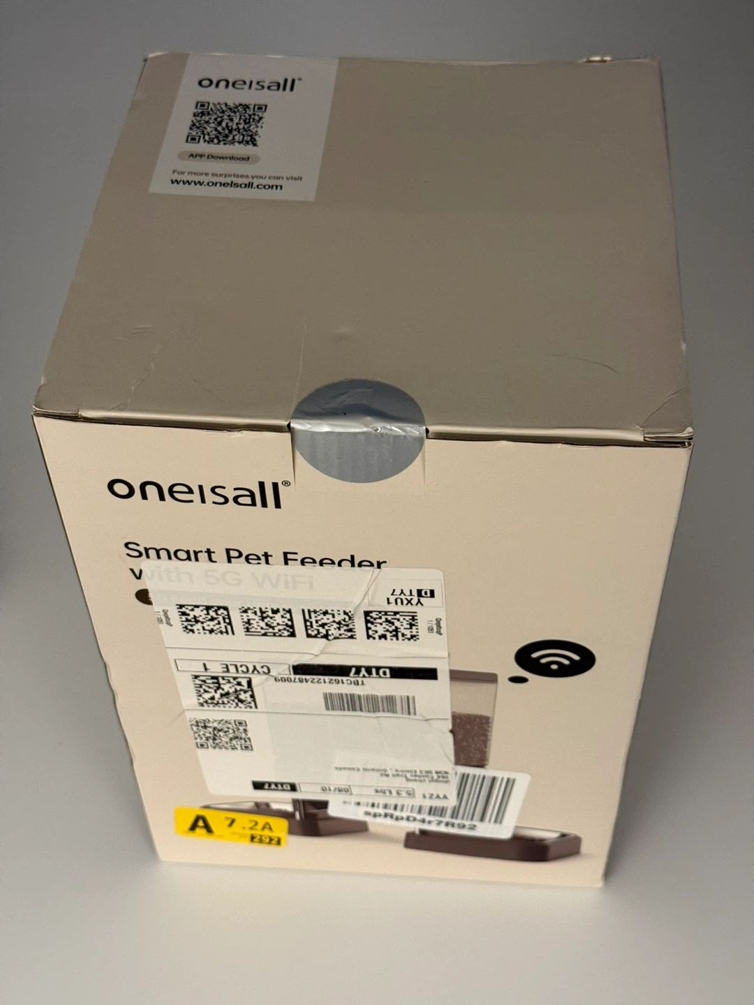 Selling a oneisall Smart Pet Feeder with 5G WiFi in black. It's an automatic cat food dispenser for two cats or small pets, holding up to 20 cups or 5L of dry food. It's timed and can be controlled via an app. I bought this for $99.99 and it comes with the original box