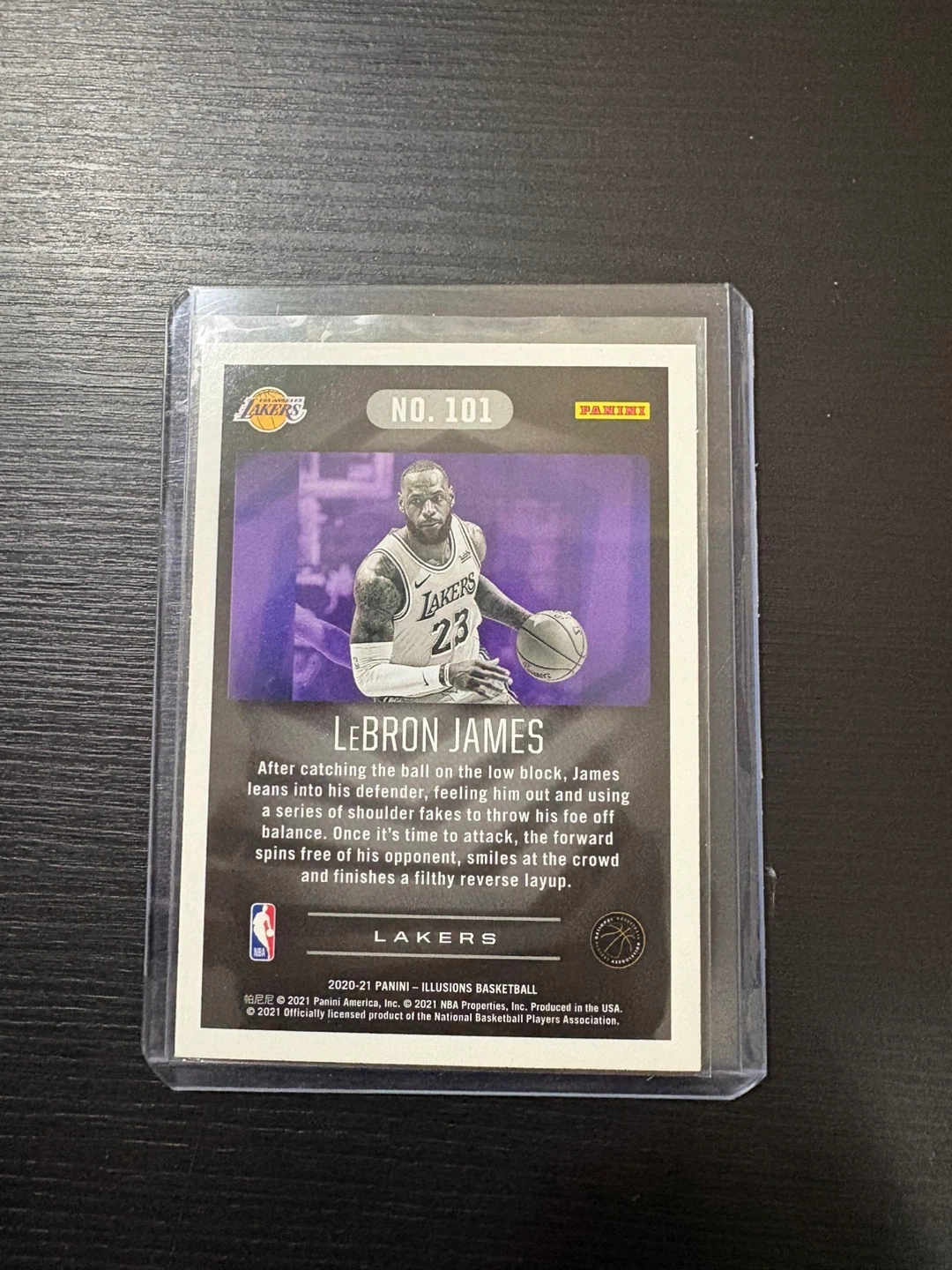 Selling a LeBron James basketball card from the 2020-21 Panini Illusions series. The card features LeBron in his Lakers jersey. It's a great addition to any basketball card collection!