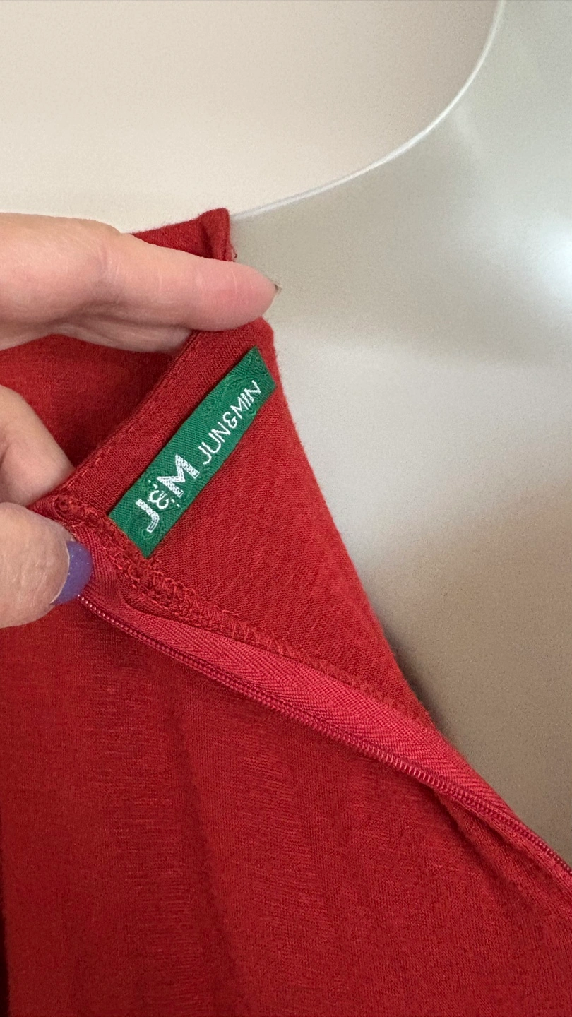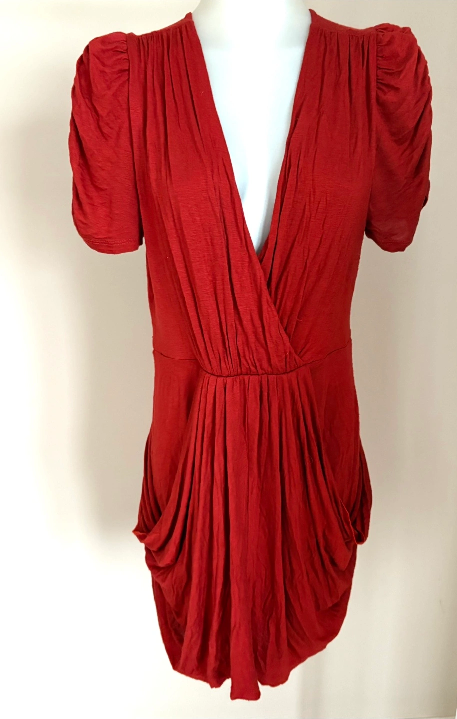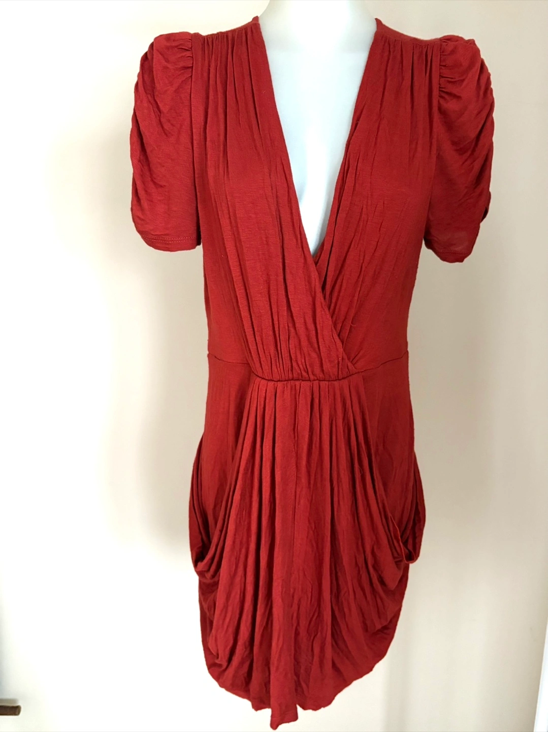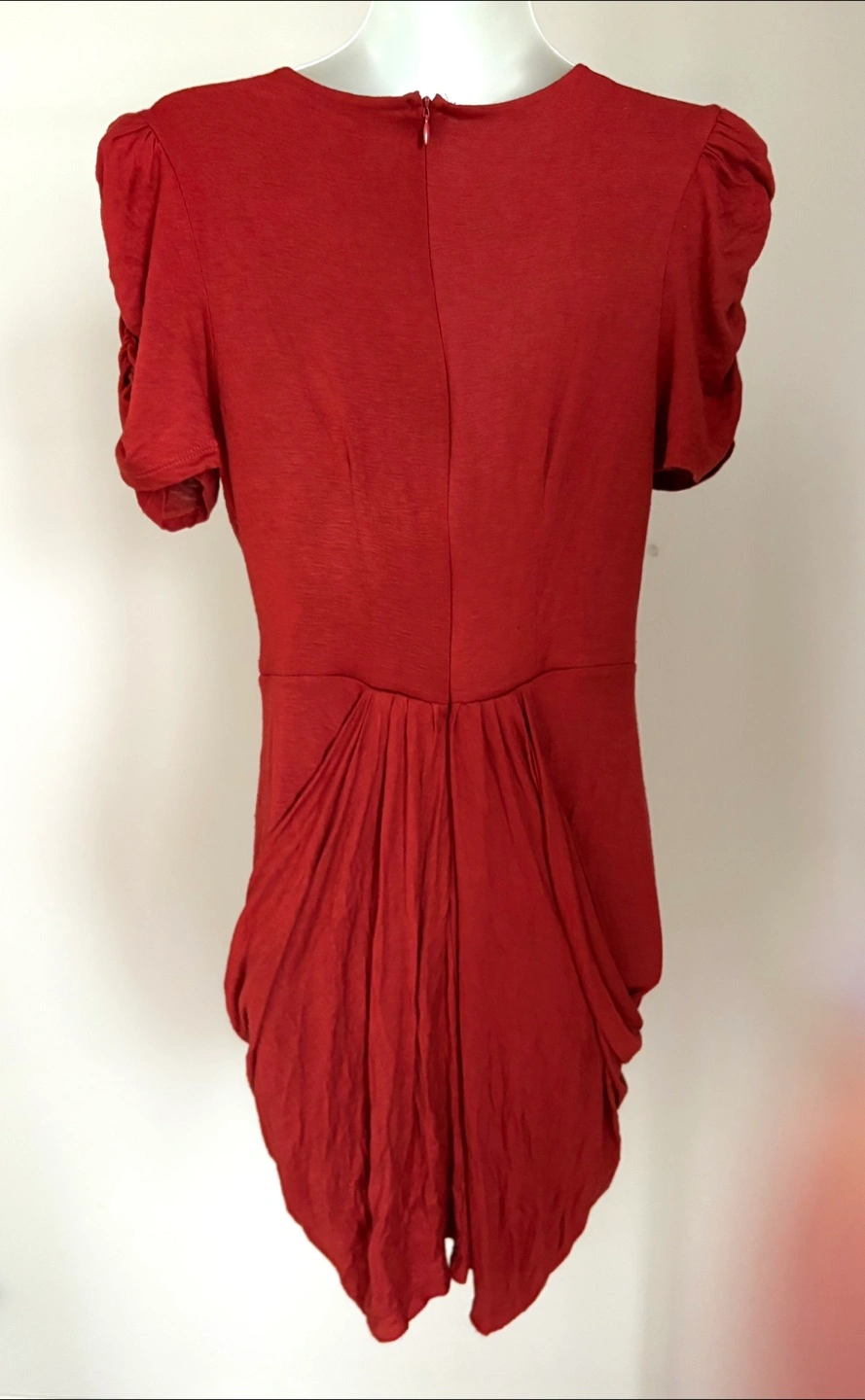 The dress has a unique draped design at the bottom, making it a standout piece for any wardrobe.