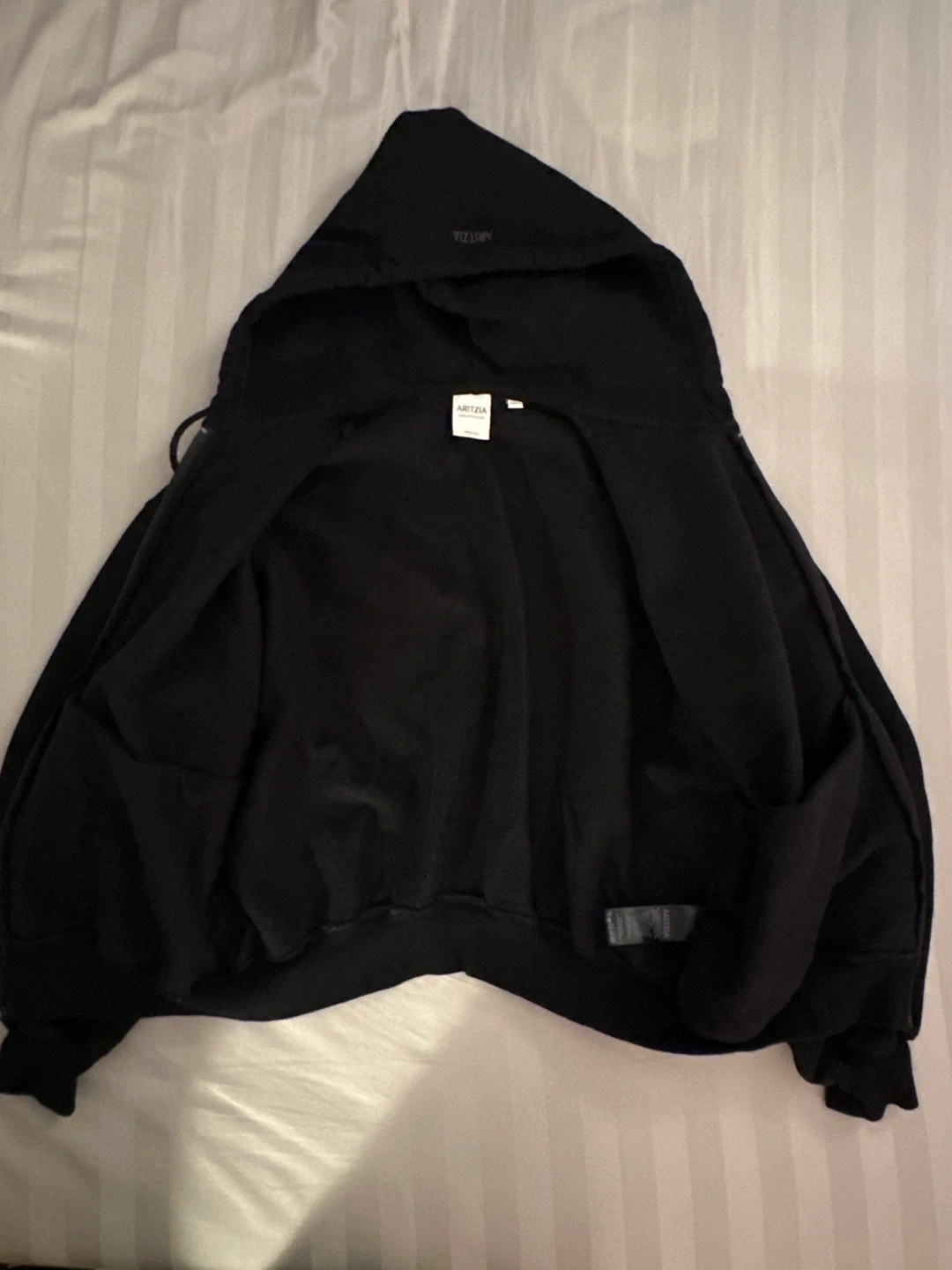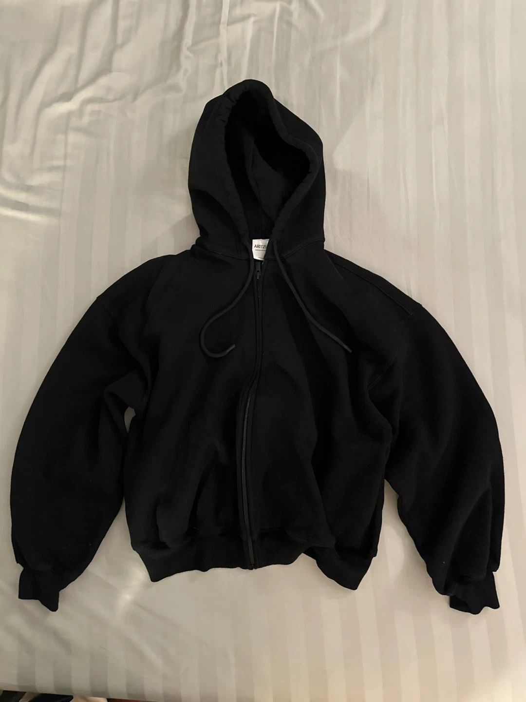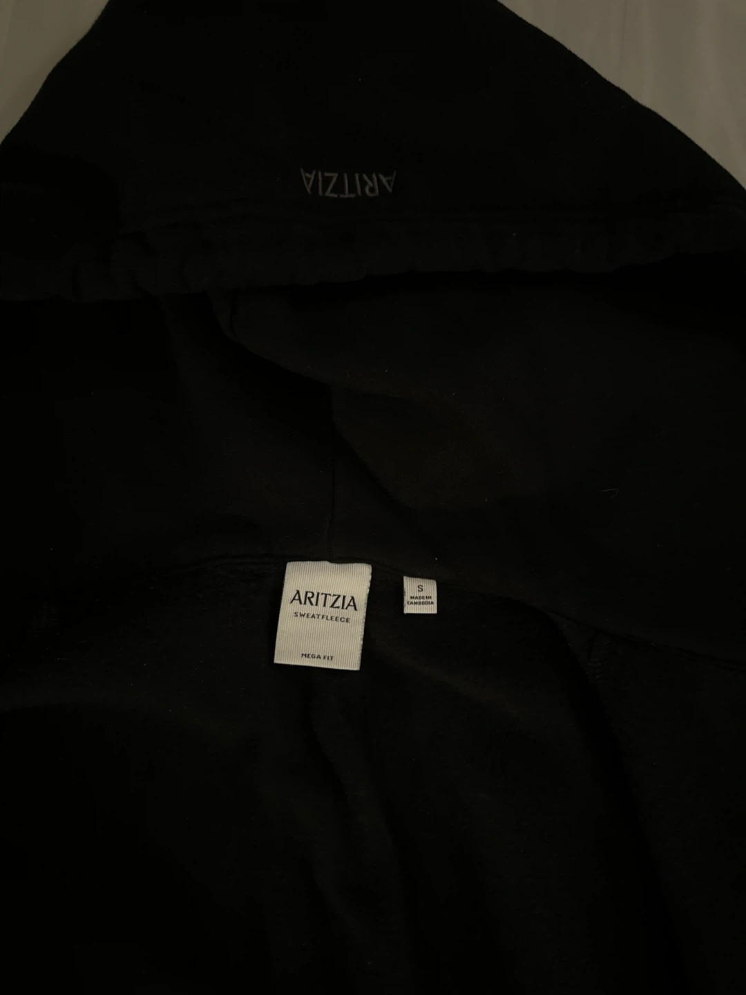 Selling an Aritzia Mega Zip Hoodie in black, size small. The material is 78% cotton and 22% polyester. It's in great condition!
