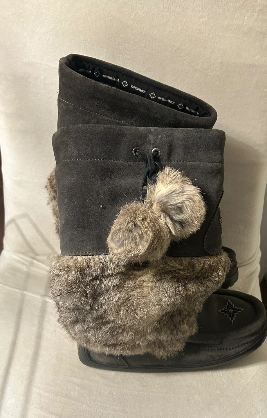 Keep your feet warm and stylish this winter with these Cougar boots! They feature a suede upper with real rabbit fur trim. They are marked as size 8 and are in good condition. Perfect for those cold Canadian winters!