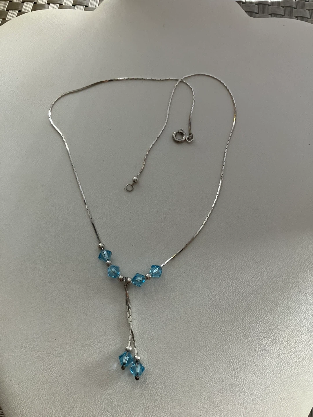 Selling a lovely Y necklace featuring sparkling blue topaz. It's in great condition and comes in a box! The necklace is 925 Sterling silver 25.5 “ inches in length