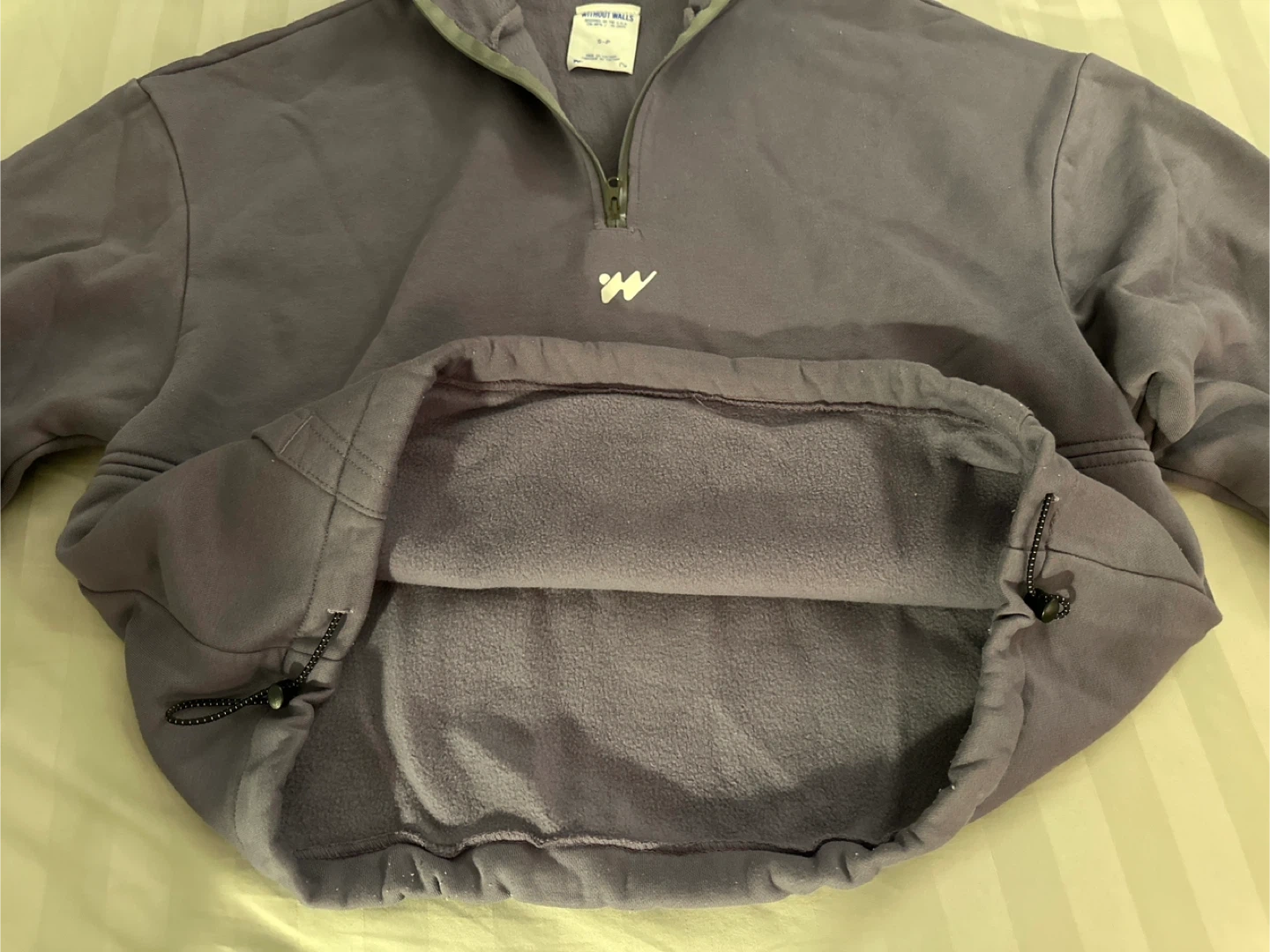Selling a Without Walls hoodie in a lovely purple colour! It's a size small and in great condition. Perfect for layering or wearing on its own for a casual, comfy look. The hoodie features a quarter zip and a kangaroo pocket. It's made from a soft, cozy material that feels great against the skin
