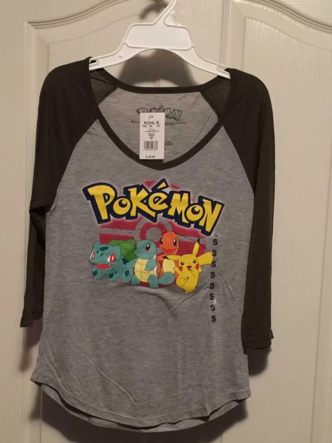 Selling a Pokémon graphic shirts ..It features Bulbasaur, Squirtle, Charmander, and Pikachu. The sleeves are 3/4 length and a dark brown colour. The main body of the shirt is grey. Great for any Pokémon fan! new xs small & large available $20 each