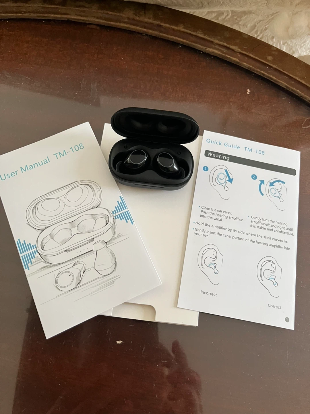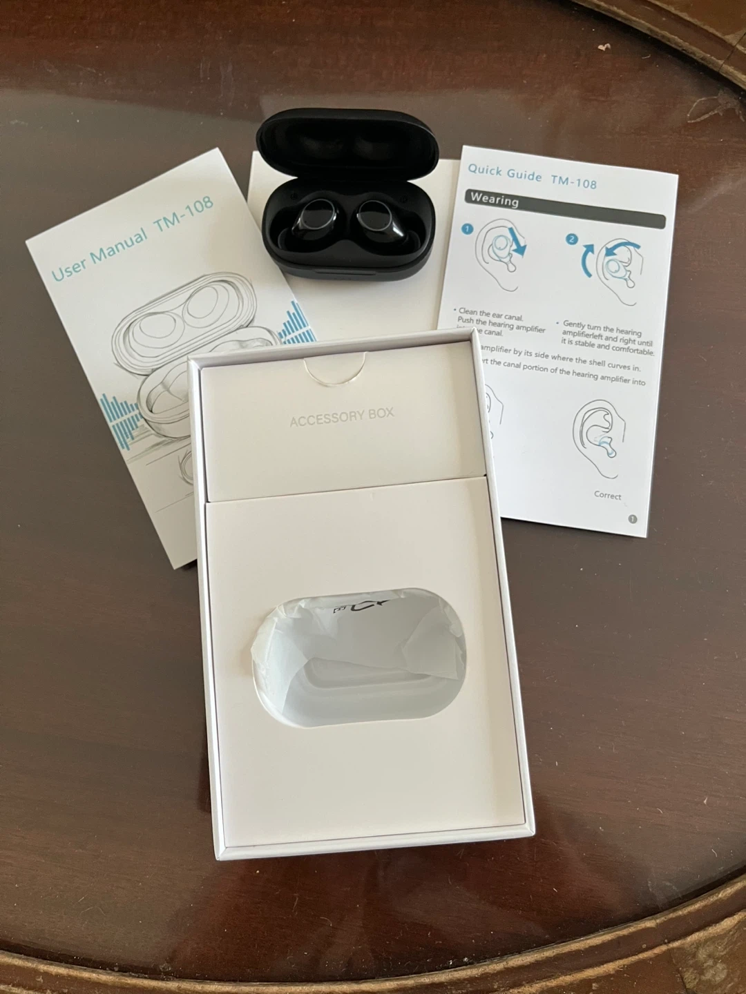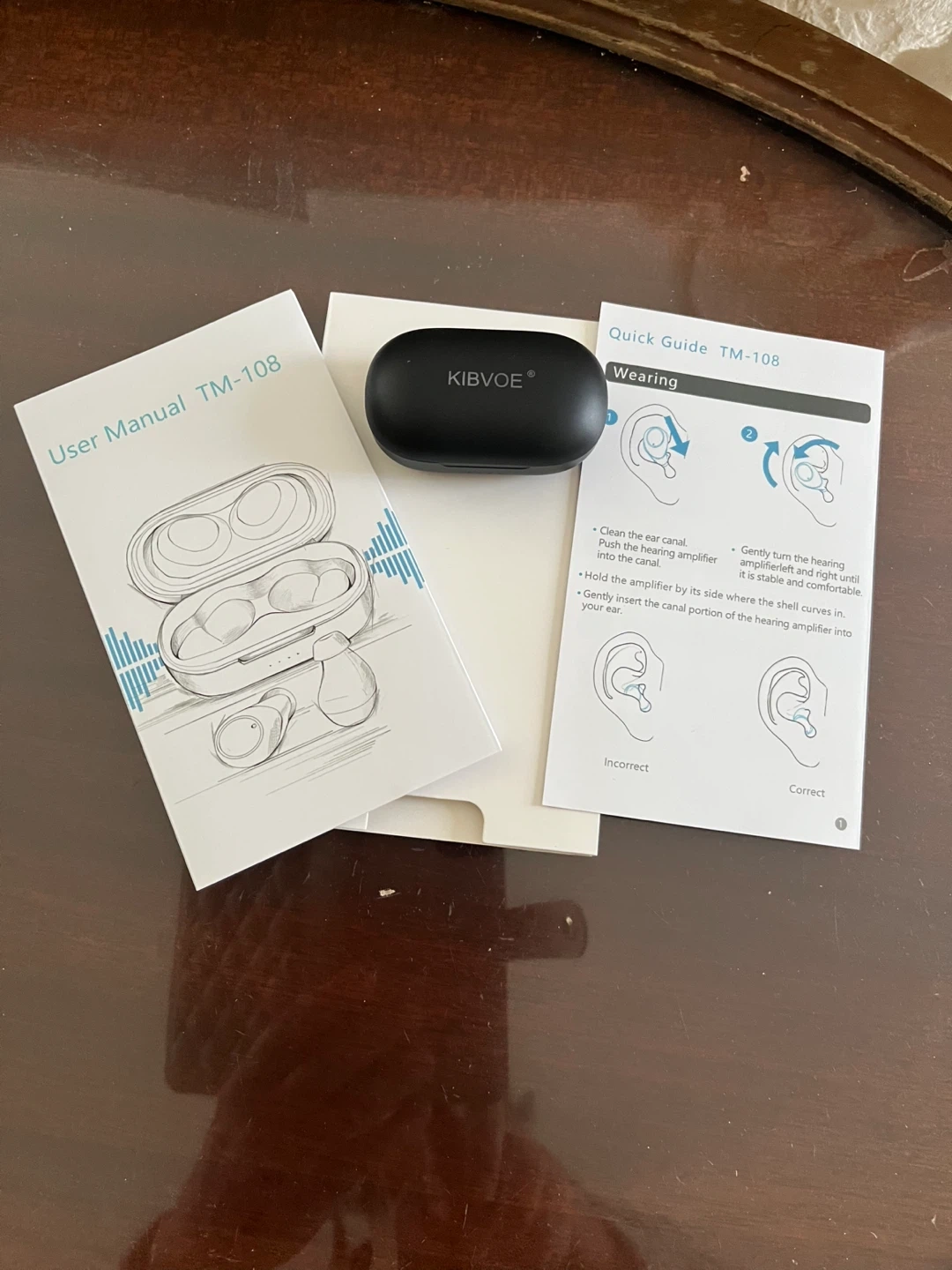 Selling a like-new KIBVOE TM-108 hearing amplifier! It comes with the user manual and quick guide. Also includes the accessory box, charger, and extra ear tips. Ready to help you hear the world better!