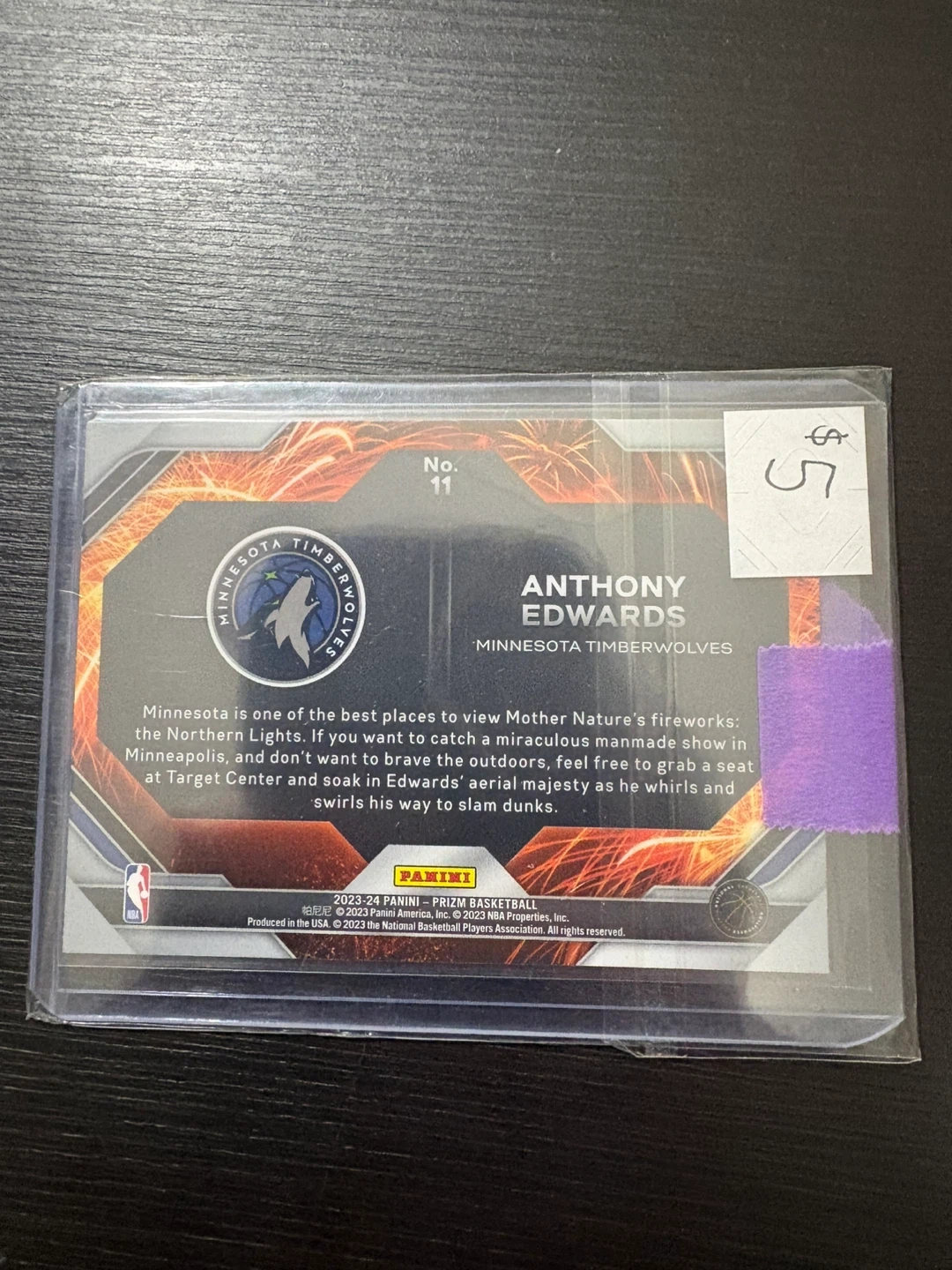 Selling an Anthony Edwards Minnesota Timberwolves Prizm basketball card from the Fireworks collection! It's in great condition and ready for a new collection