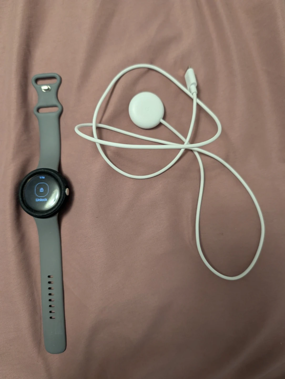 Selling a Google Pixel Watch in great condition! It comes with the original charger, screen protector and a watch case. The watch has a sleek design and is easy to use. Perfect for tracking fitness and staying connected!