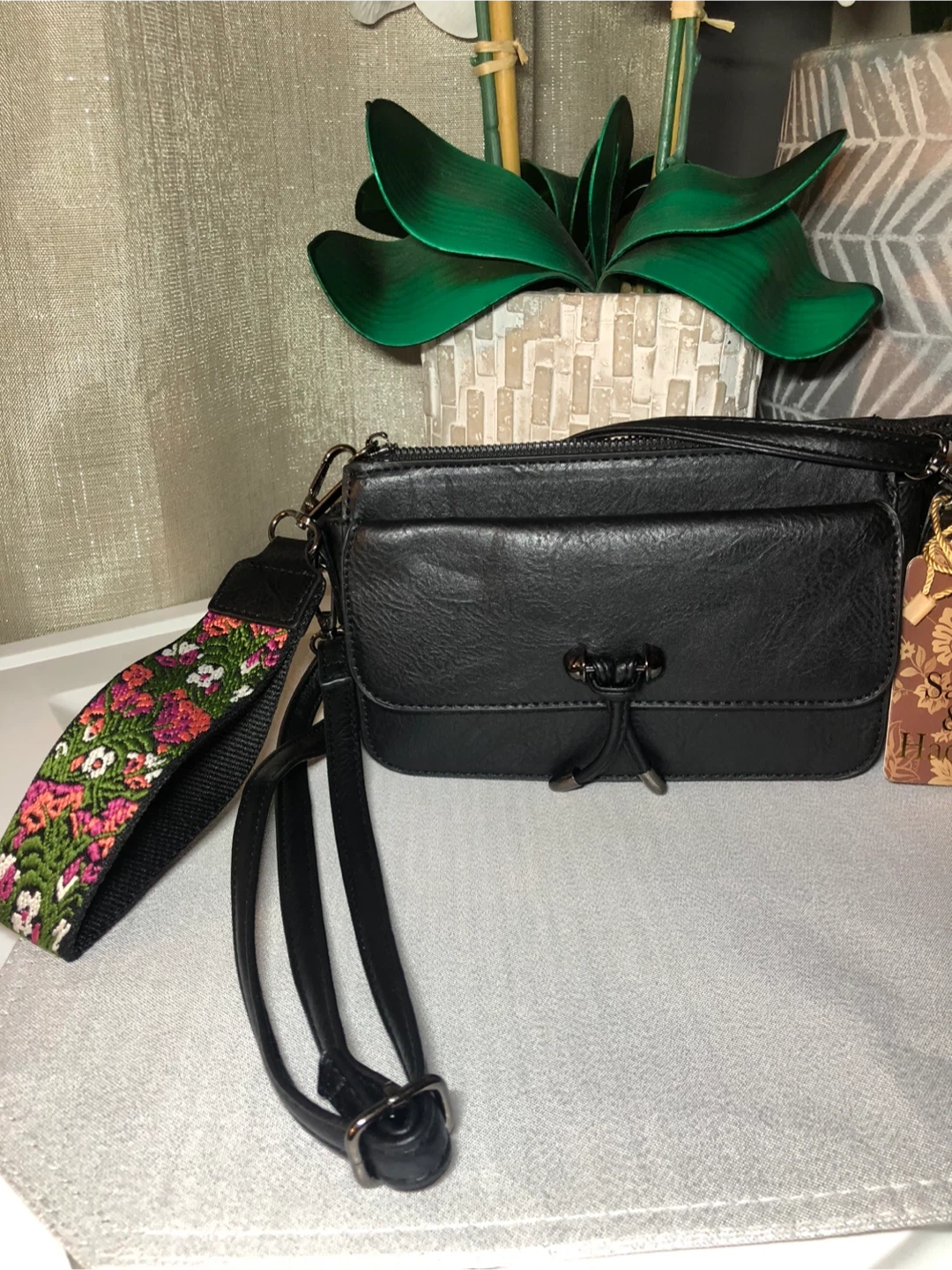 Cute Sam Hart black crossbody bag! It's in great condition and features a unique floral patterned strap. Perfect for everyday use!