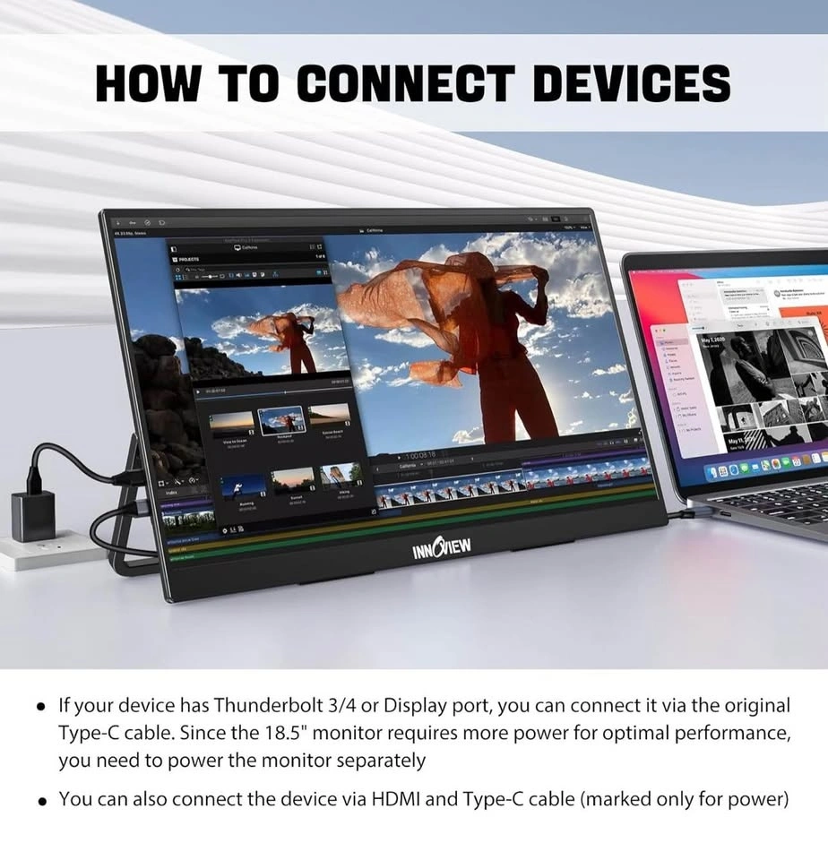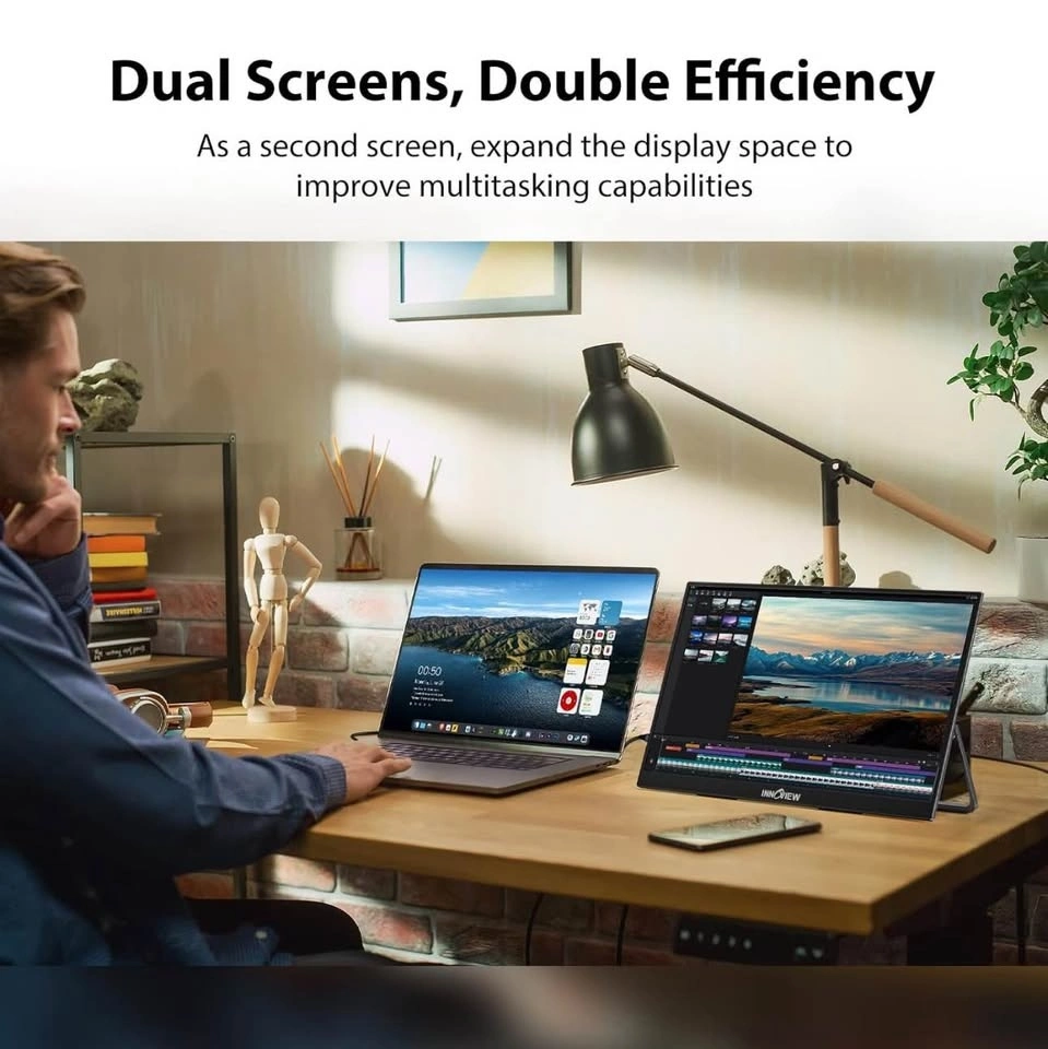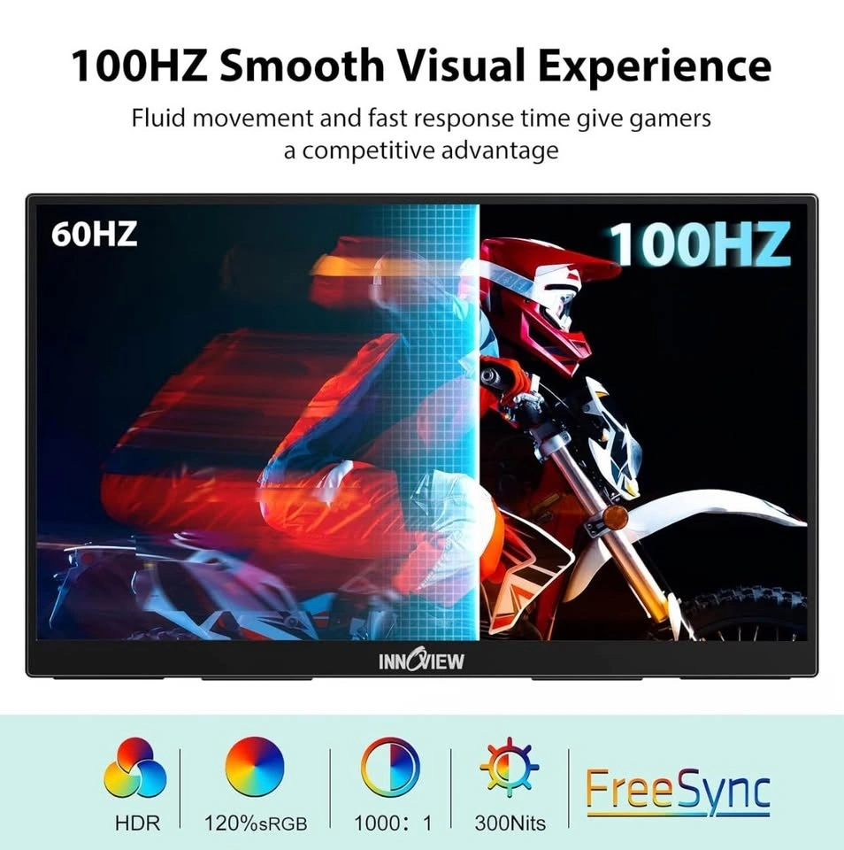 18.5” InnoView portable IPS monitor – Full HD, 100Hz refresh rate, 120% sRGB color, HDR, and built-in kickstand. Super slim and great for work, travel, gaming, dual-screen setups, and consoles. Compatible with: Laptop, Mac, PC, Xbox, PS4/PS5, Nintendo Switch, USB-C & HDMI. Amazing picture quality and perfect for portability. Pickup in Hamilton.