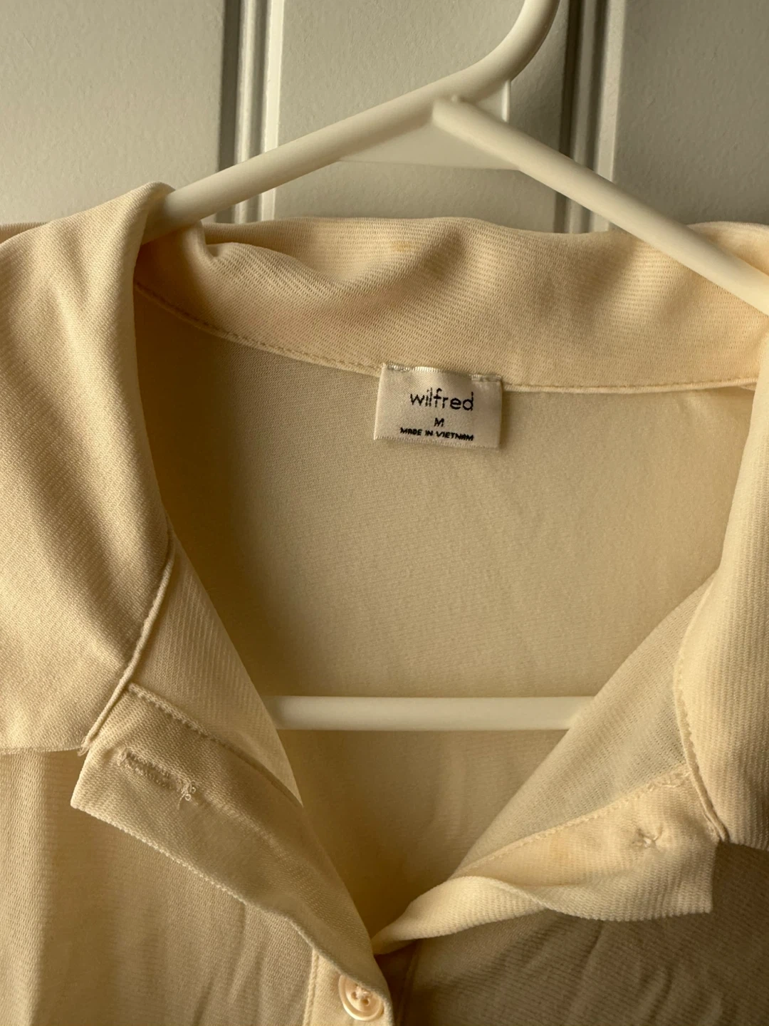 Wilfred button-up shirt in a size medium! There's a small stain on the collar, as pictured. Barely noticeable.