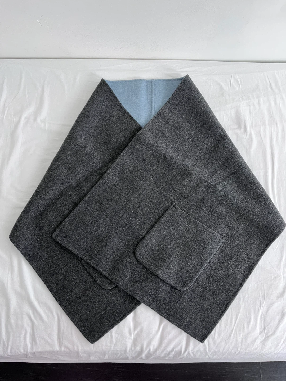 Reversible Shawl Wrap with Pockets - Wool felt-like fabric