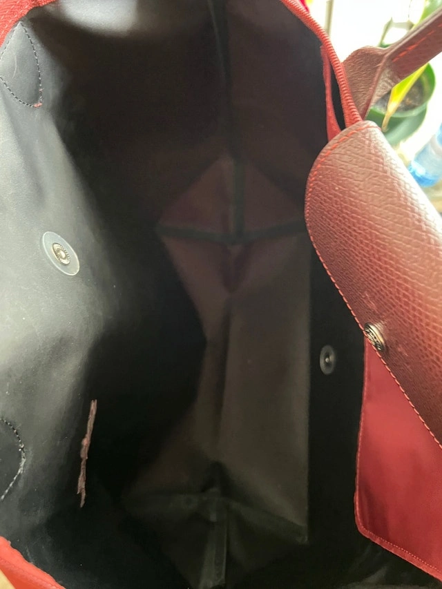 Authentic. With the club line the strap and flap colour match the bag instead of the standard brown colour. This bag is a red wine colour and it is in excellent used condition. Minor wear on the corners but not noticeable at all unless you look really close. I am not a counterfeit expert but the fake ones the material is very soft, whereas the authentic ones the inside plastic material is stiff so it is a strong good quality material.