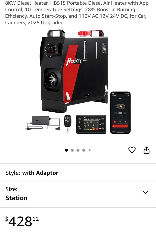 BRAND NEW SEALED Hcalory 8KW diesel heater, model HBS1S. It's a portable unit with app control, offering 10-temperature settings and a 28% boost in burning efficiency. Features include auto start-stop and it runs on 110V AC, 12V, and 24V DC, suitable for cars and campers. It is the 2025 upgraded model. If you're seeing this ad, then yes, it's still available! I'm decluttering my space, so it's time for this gem to find a new home.