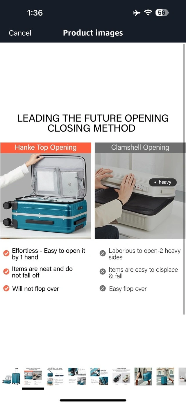 This is a brand new Hanke carry-on suitcase with a PC hardshell, top-opening design, aluminum frame, and smooth-rolling spinner wheels, perfect for travel. Here are some of its features: * Durable spinner wheels suitable for different road surfaces * Top-opening design saving 50% of floor space * Deep enough to reasonably differentiate storage * Effortless and easy to open with one hand * TSA lock Why buy new luggage when you can get it brand new for a fraction of the cost? If the ad is up, it's available. No need to ask! :)