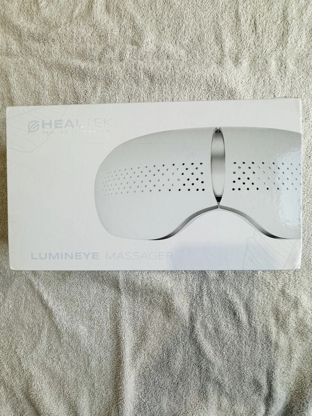 Experience ultimate relaxation with the HealTek Premium Eye Massager! This brand new Lumineye Massager offers soothing heat, gentle massage, and calming sounds to relieve eye strain and promote restful sleep. It comes complete with all original accessories and packaging. Key Features: * Heat Therapy: Provides gentle warmth to soothe tired eyes. * Massage Modes: Offers various massage settings for personalized comfort. * Built-in Sounds: Includes calming nature sounds and white noise to enhance relaxation. * Bluetooth Connectivity: Connect your device to play your own music or podcasts. * Portable Design: Lightweight and rechargeable for use at home or on the go. Ready to transform your relaxation routine? If the ad is up, it's available! Retail Price - $180