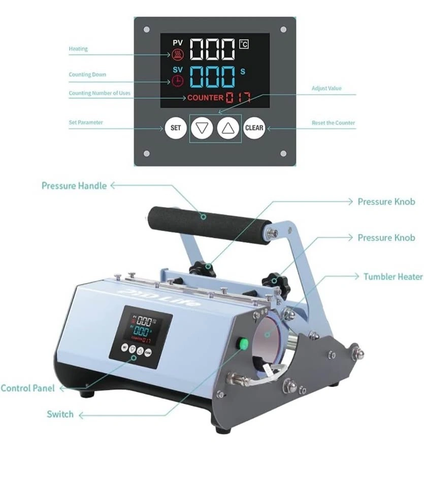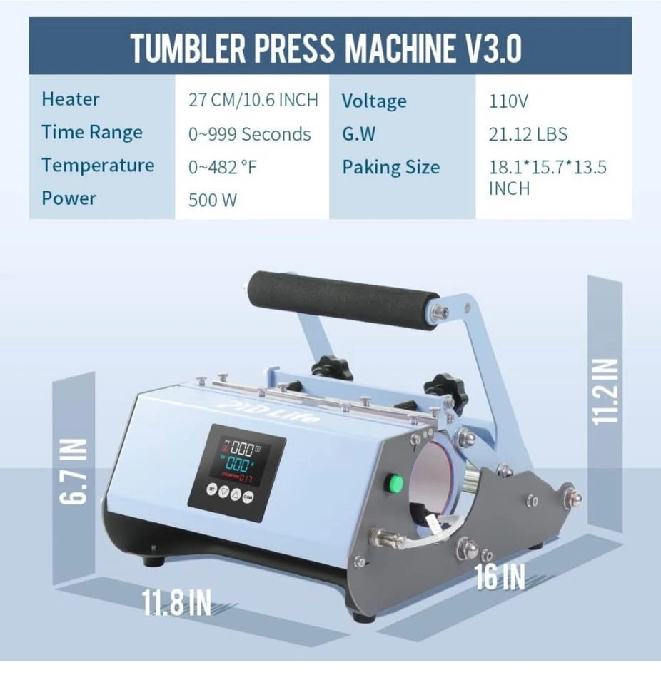 Brand new PYD Life 110V Tumbler Heat Press in vibrant blue – perfect for sublimation printing! Compatible with a wide range of tumbler sizes (11, 15, 16, 20, 30 OZ) and straight ceramic mugs. Ideal for DIY custom mugs, personalized gifts, or small business printing. Easy to use, durable, and delivers professional-quality heat transfers every time.