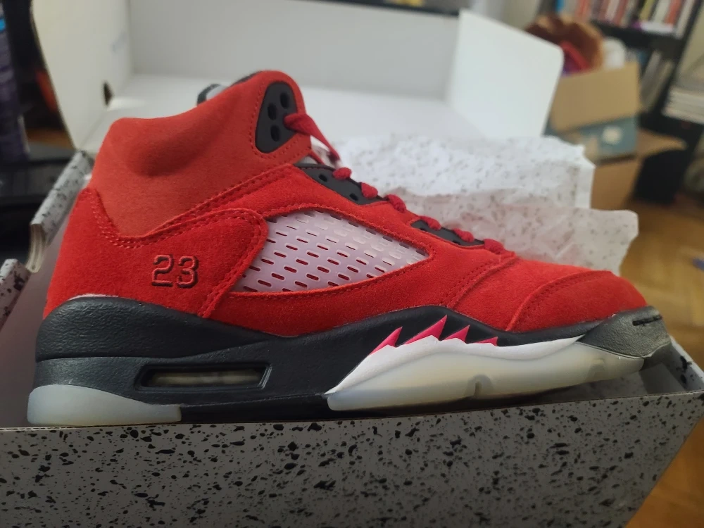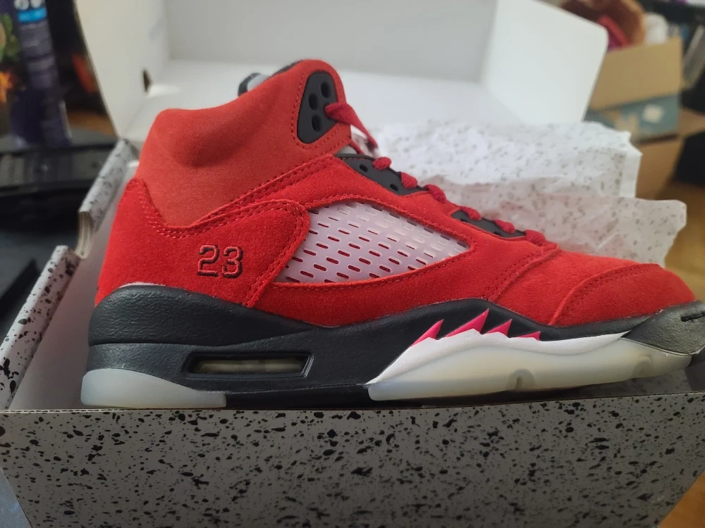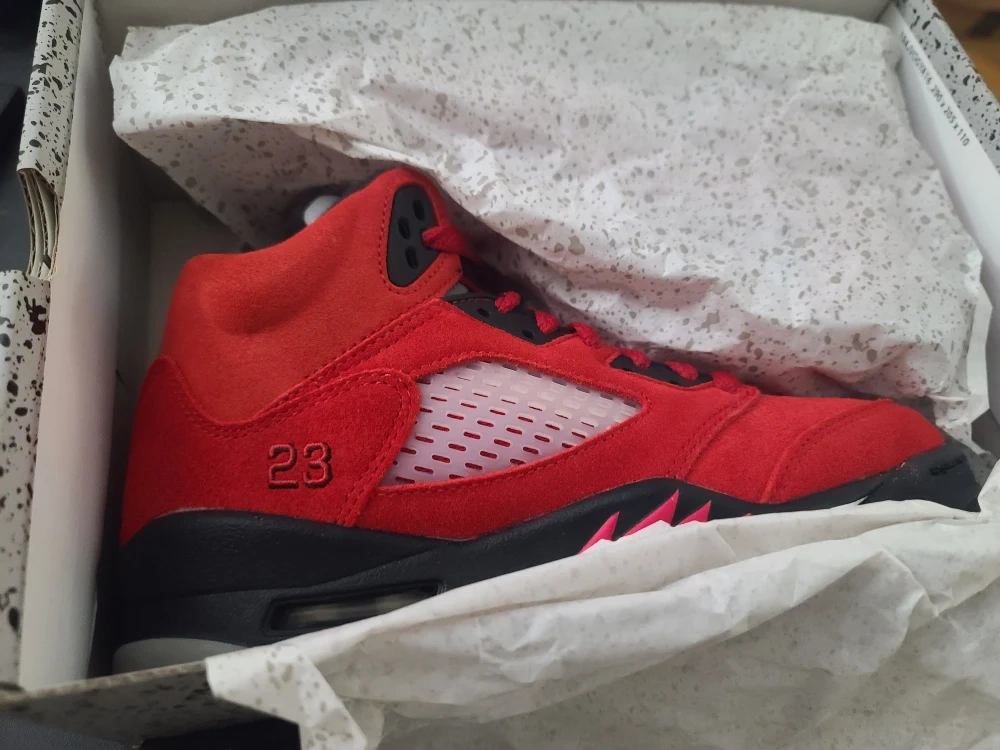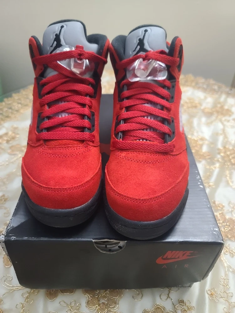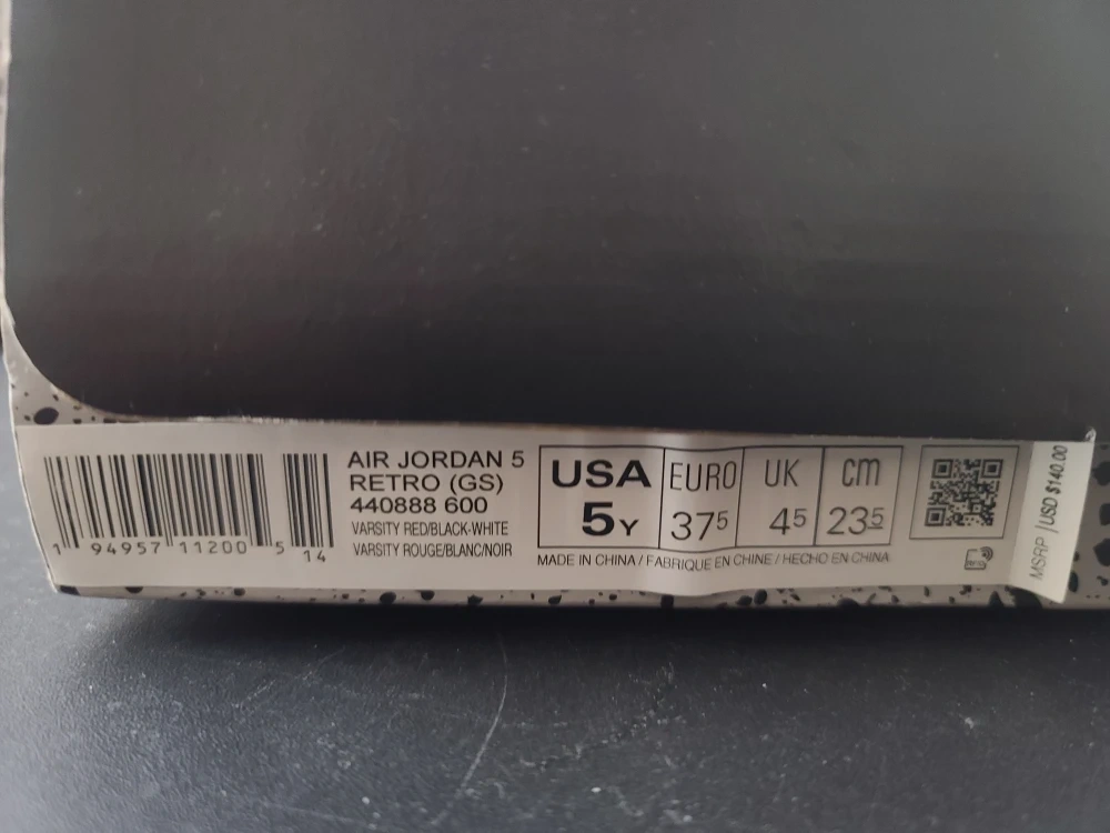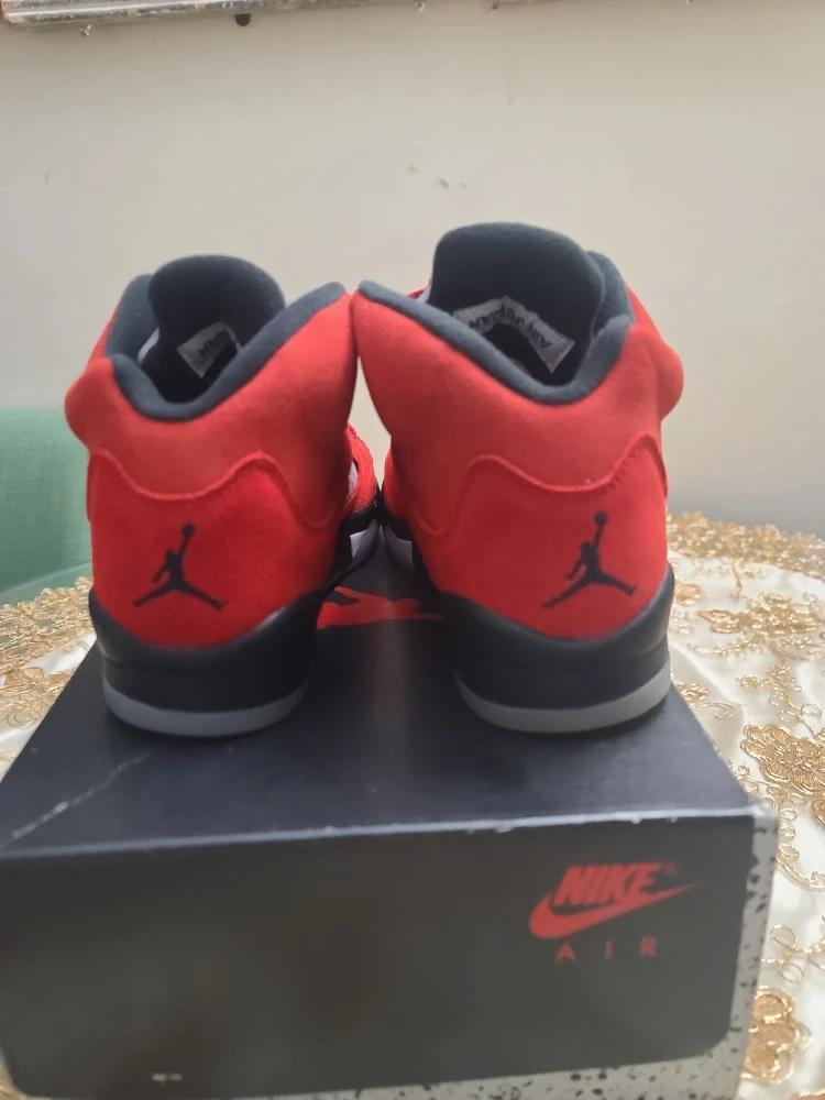 Selling a pair of Air Jordan 5 Retro (GS) in Varsity Red/Black-White. These are a youth size 5Y. The original box is included! Originally retailed for $140 Box is slight damage Taking offers