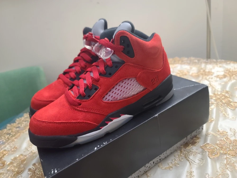 Selling a pair of Air Jordan 5 Retro (GS) in Varsity Red/Black-White. These are a youth size 5Y. The original box is included! Originally retailed for $140 Box is slight damage Taking offers