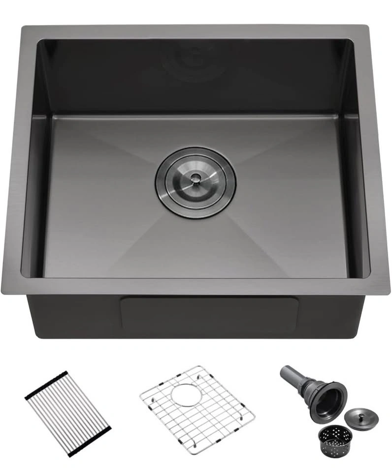 Brand new Luckyhorse 20” x 17” undermount kitchen/bar sink in matte black stainless steel, 16-gauge. Comes with black nano accessories for a modern, sleek look. Durable, scratch-resistant, and perfect for stylish kitchen or bar installations. Still in original box.
