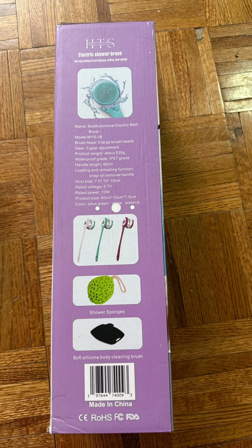 Selling a brand new HTS Electric Shower Brush! It's still in its original box and ready for a new home. This brush offers one-step cleaning for facial cleansing, bathing, and mud rubbing.