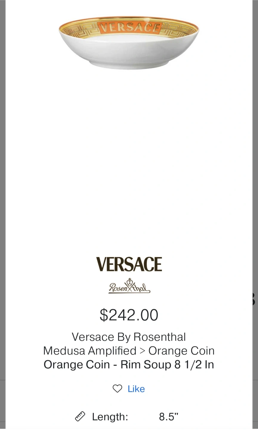AUTHENTIC Versace by Rosenthal Medusa Amplified Golden Coin Rim Soup Bowl. It's in new unused condition and measures 8 1/2 inches.