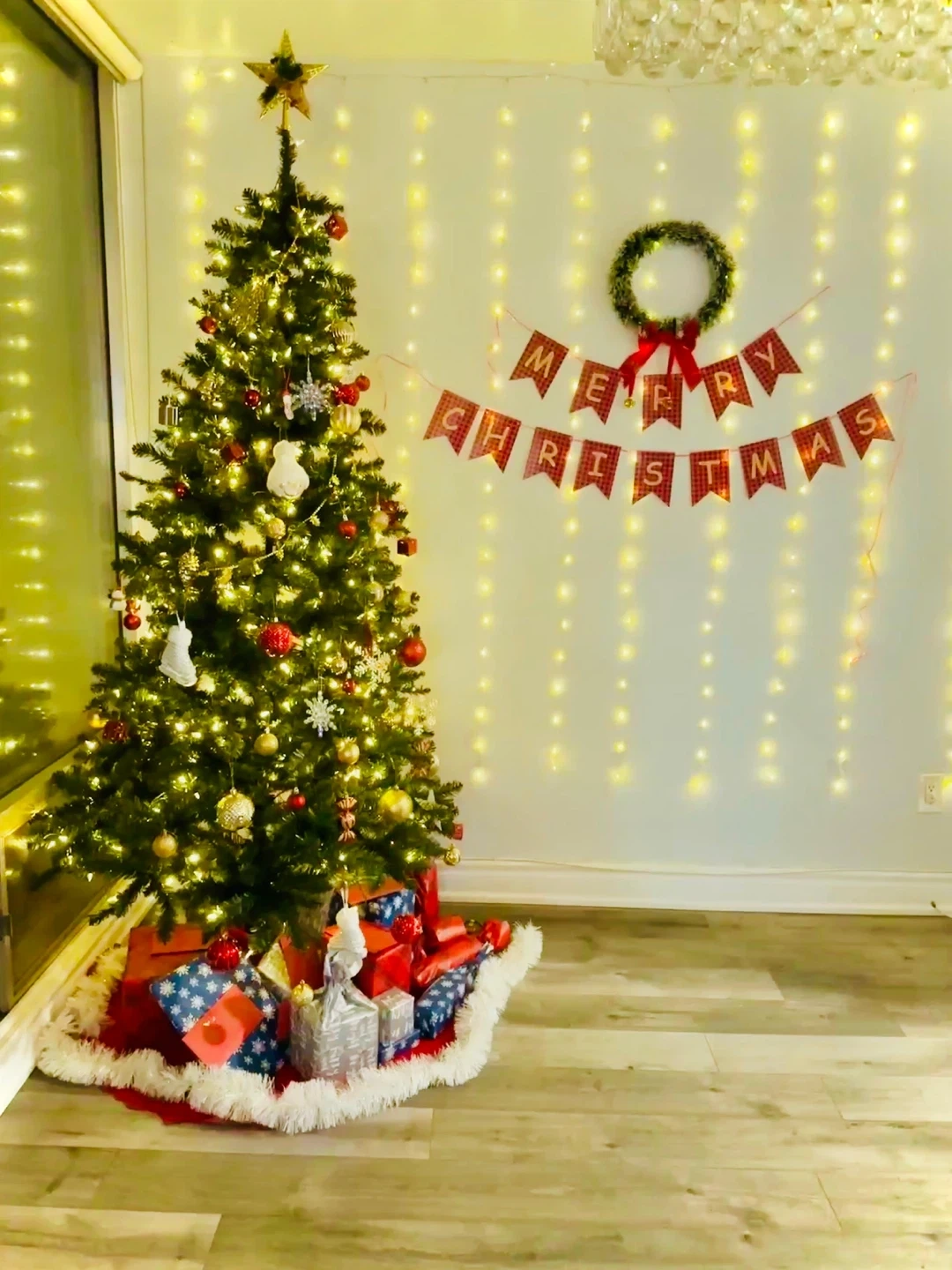 Selling a Holiday Time 7-ft Pre-Lit Duncan Fir Christmas tree! It includes: - 400 pre-strung LED mini lights - 1066 branch tips - Tree stand included - 48 in diameter - Easy setup/assemblage - Flame retardant - 2 year limited warranty