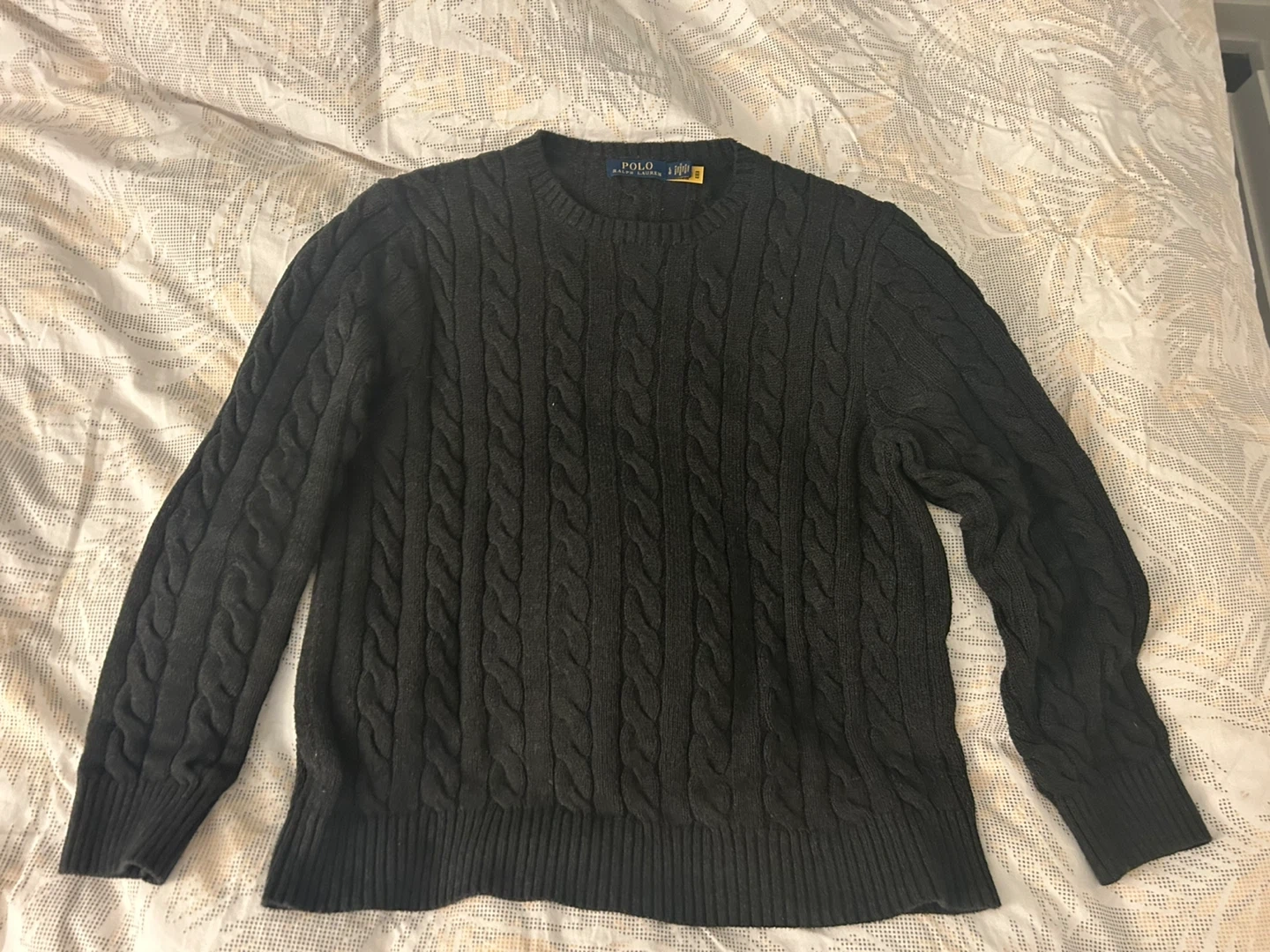 Cozy Polo Ralph Lauren cable knit sweater in size large. It's a classic piece in great condition! The material is soft and warm, perfect for the cooler weather.