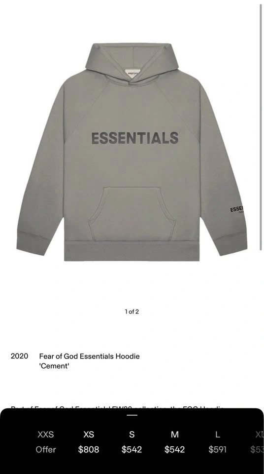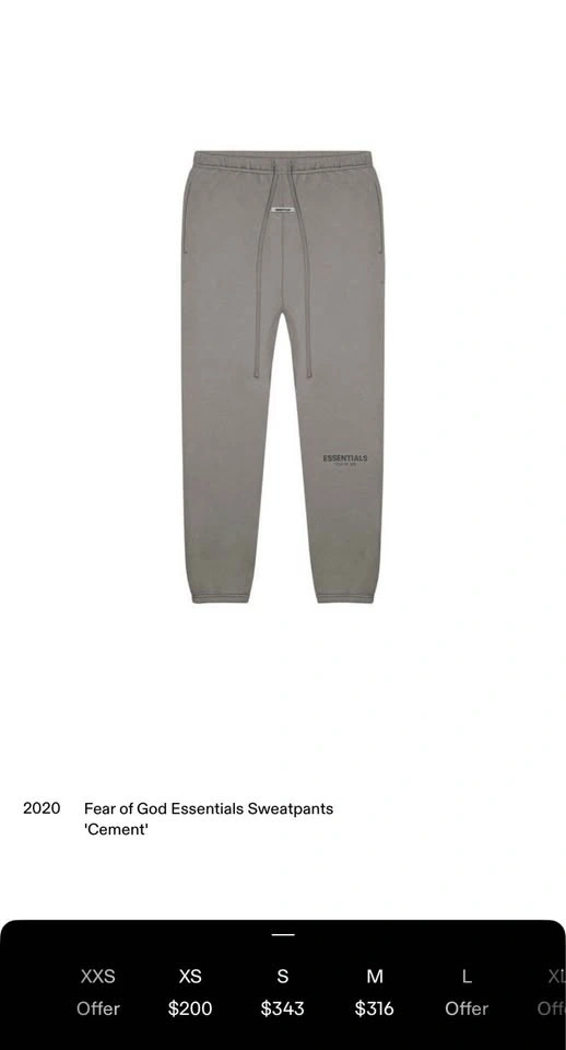 Buy & SellEssentials cement set (S)Essentials cement set (S)$300Essentials set Hoodie + sweatpants Goat verified Hoodie used - good Sweatpants - like new Size both SWHERE TO MEETCheck LocationView MapSELLERKavehCentral Lonsdale50 reviews1 chats·0 favorites·4 views