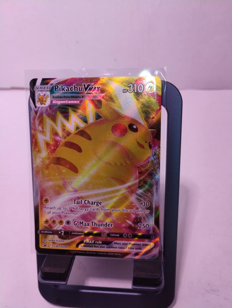 Selling a Pikachu VMAX Pokemon card! It's in great condition and ready for a new collection. Promo swsh286