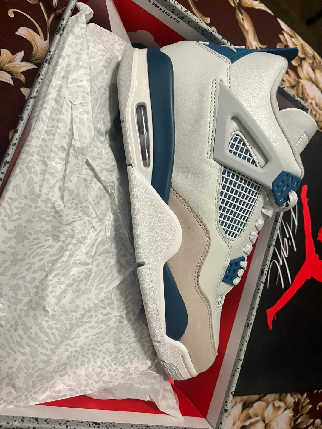 Selling a pair of Nike Air Jordan 4 Retro in the Military Blue colourway, size 12.