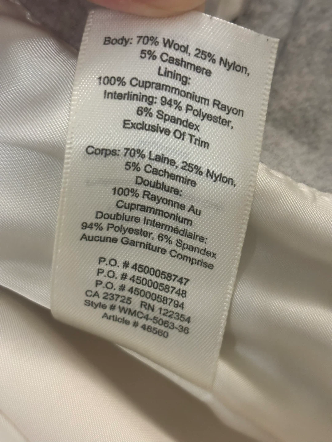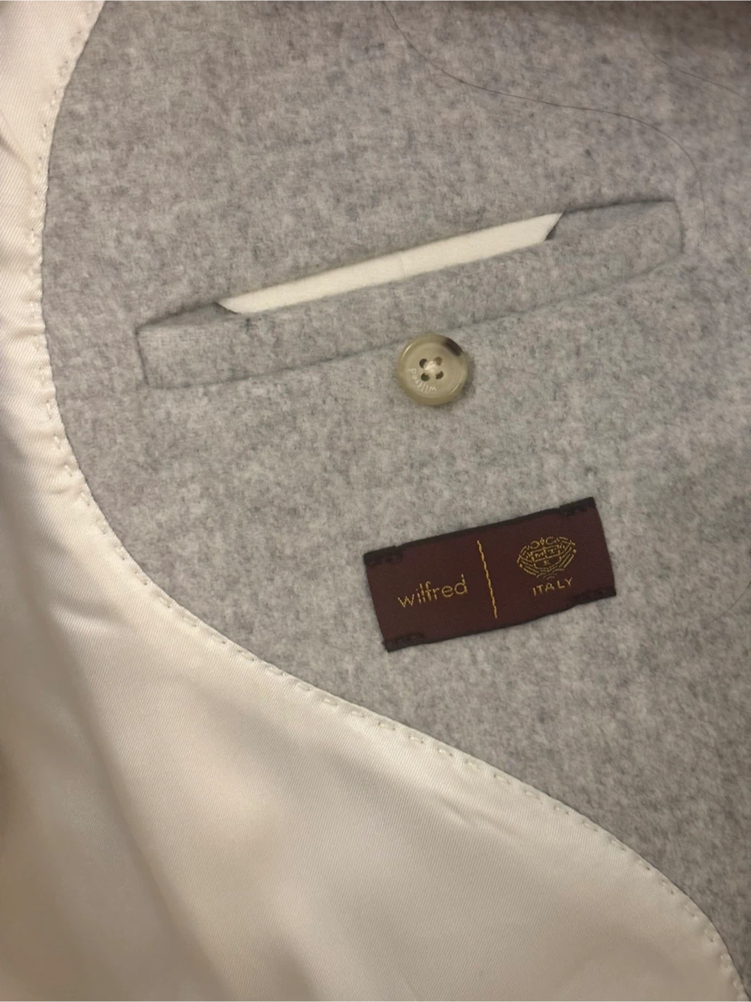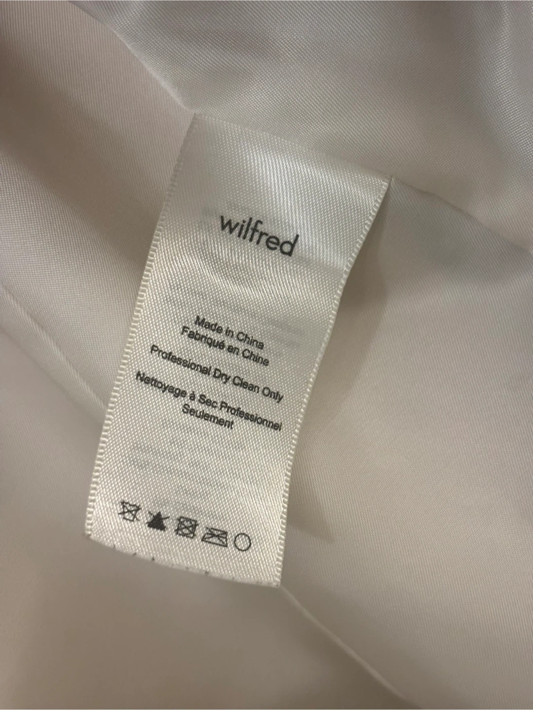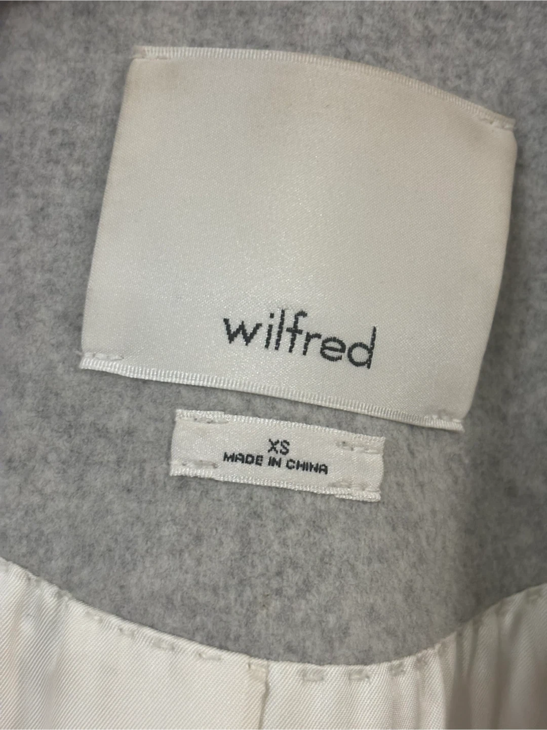 Selling a Wilfred wool blend coat in a light grey colour. It's a size XS and made with 70% wool, 25% nylon, and 5% cashmere. The lining is 100% cupro rayon. Perfect for layering during the cooler months!