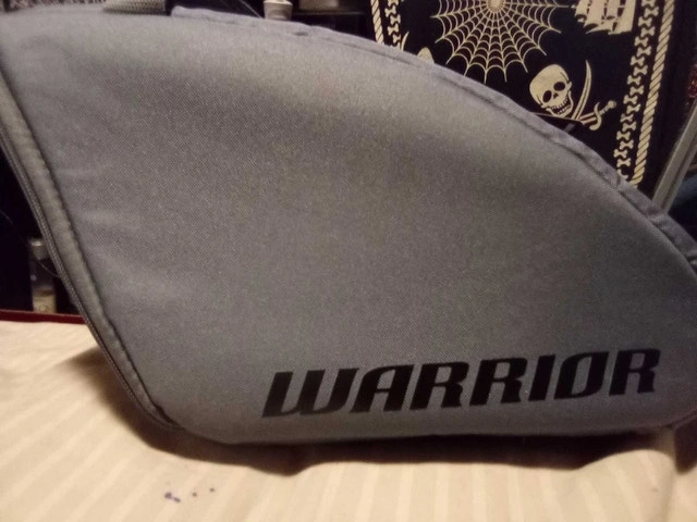 Brand new goalie helmut bag. Never been used. The material is made of an active ingredient biocide based on silver salt made from recycled silver. Guaranteed quality item. Comes with goalie helmut neck guard.