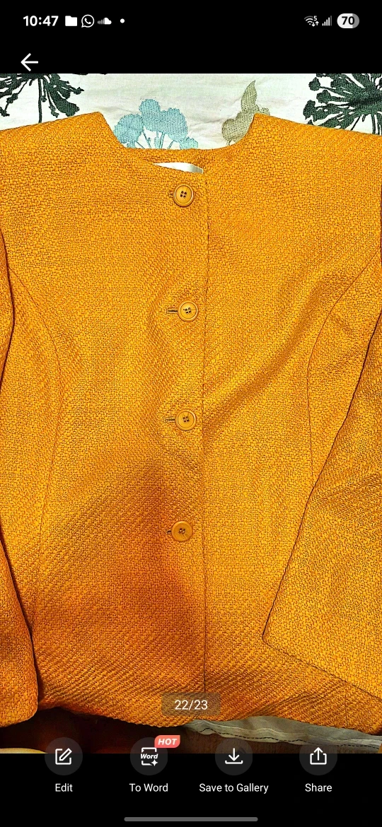 Selling a Horizon jacket in size 16. The jacket is a beautiful mimosa colour and made of 96% wool and 4% other materials. Originally bought for $370. Made in Canada!