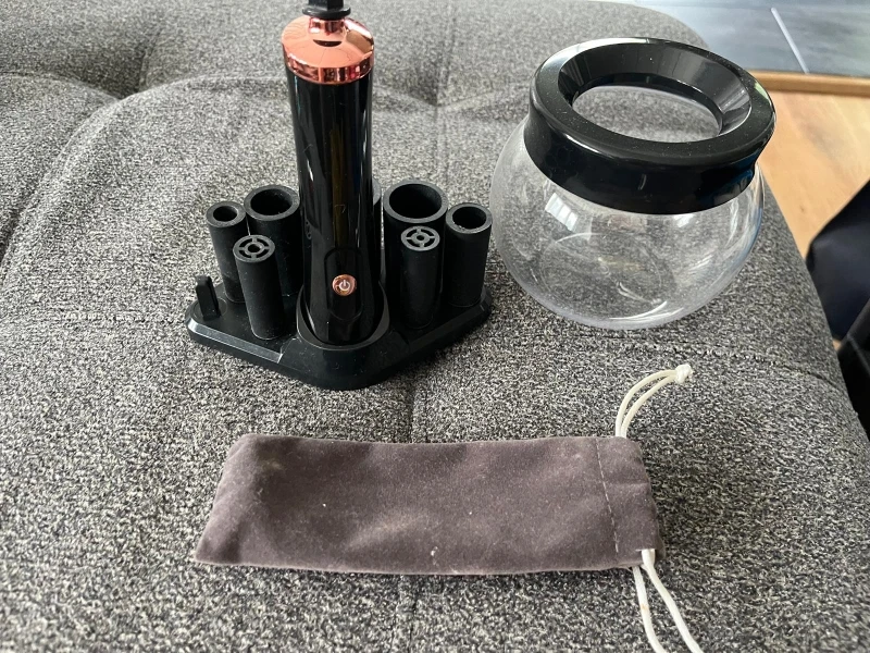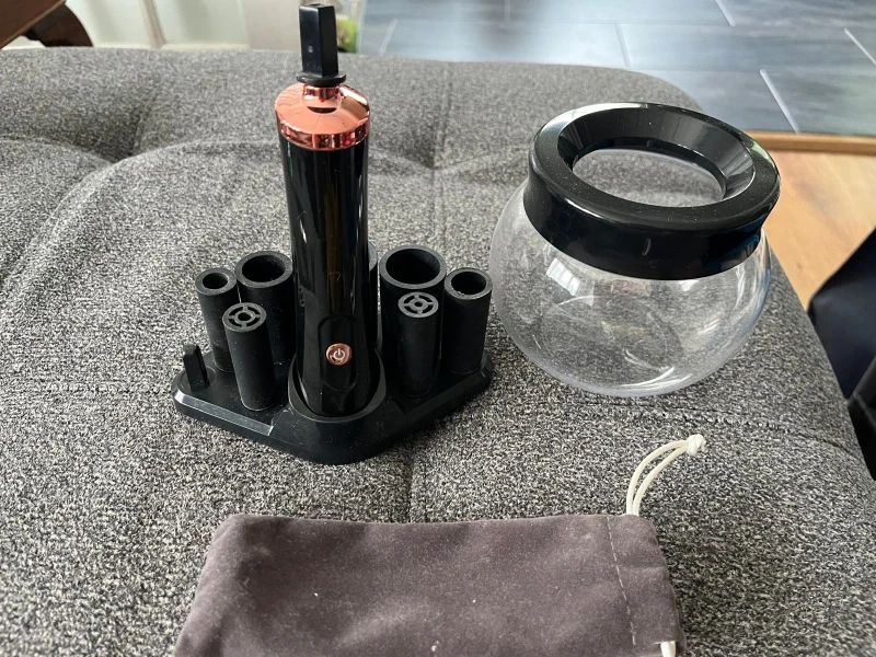 Selling an electric makeup brush cleaner. It comes with a stand for the brushes, a cleaning bowl, and a small carrying bag. Great for keeping your brushes clean and ready to use