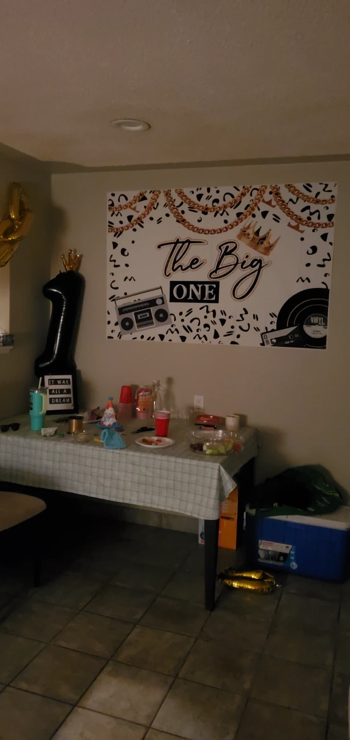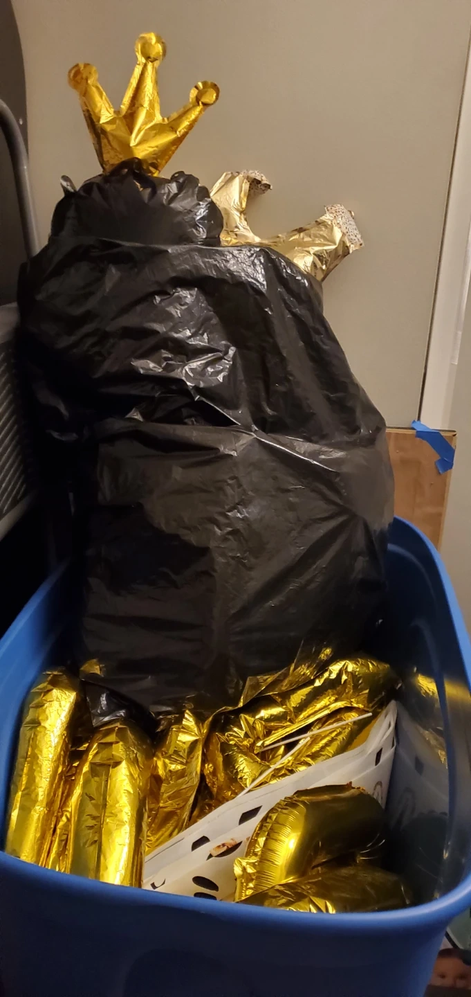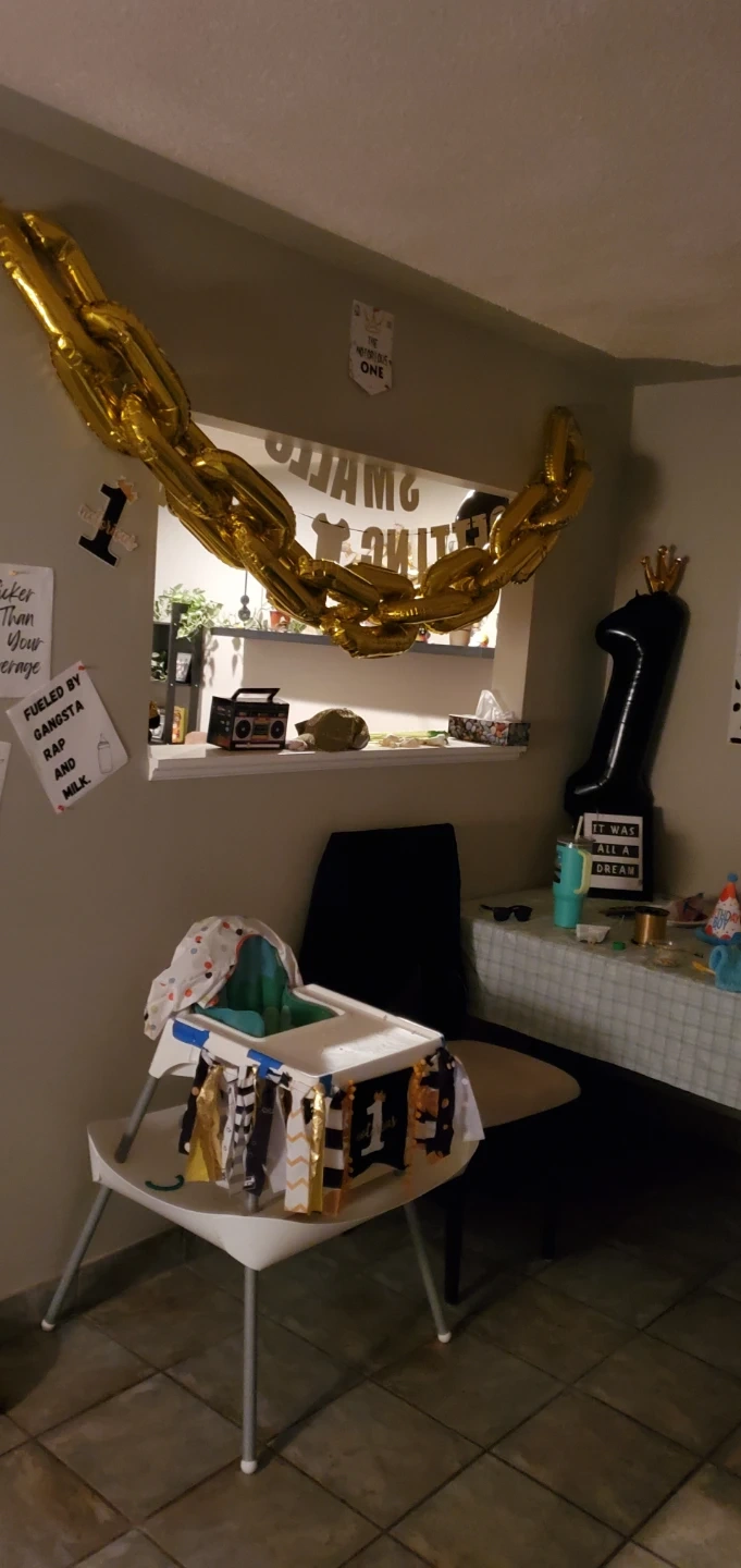 A lot of decorations for a hip-hop themed first birthday you won't forget! The balloons can be refilled with helium. We've used most of the regular balloons but all the helium should still be fine. The big gold chain is my favorite!