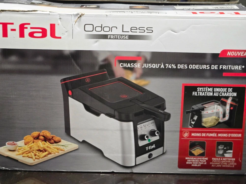 Selling a brand new T-fal Odor Less Friteuse still in its original packaging! This fryer features a unique charcoal filtration system to reduce odours by up to 74% while frying. Enjoy less smoke and less odour while cooking your favourite fried foods. It also has a viewing window and is easy to clean. Get ready to enjoy crispy, delicious treats with this convenient fryer!