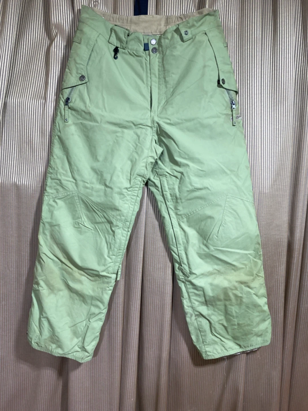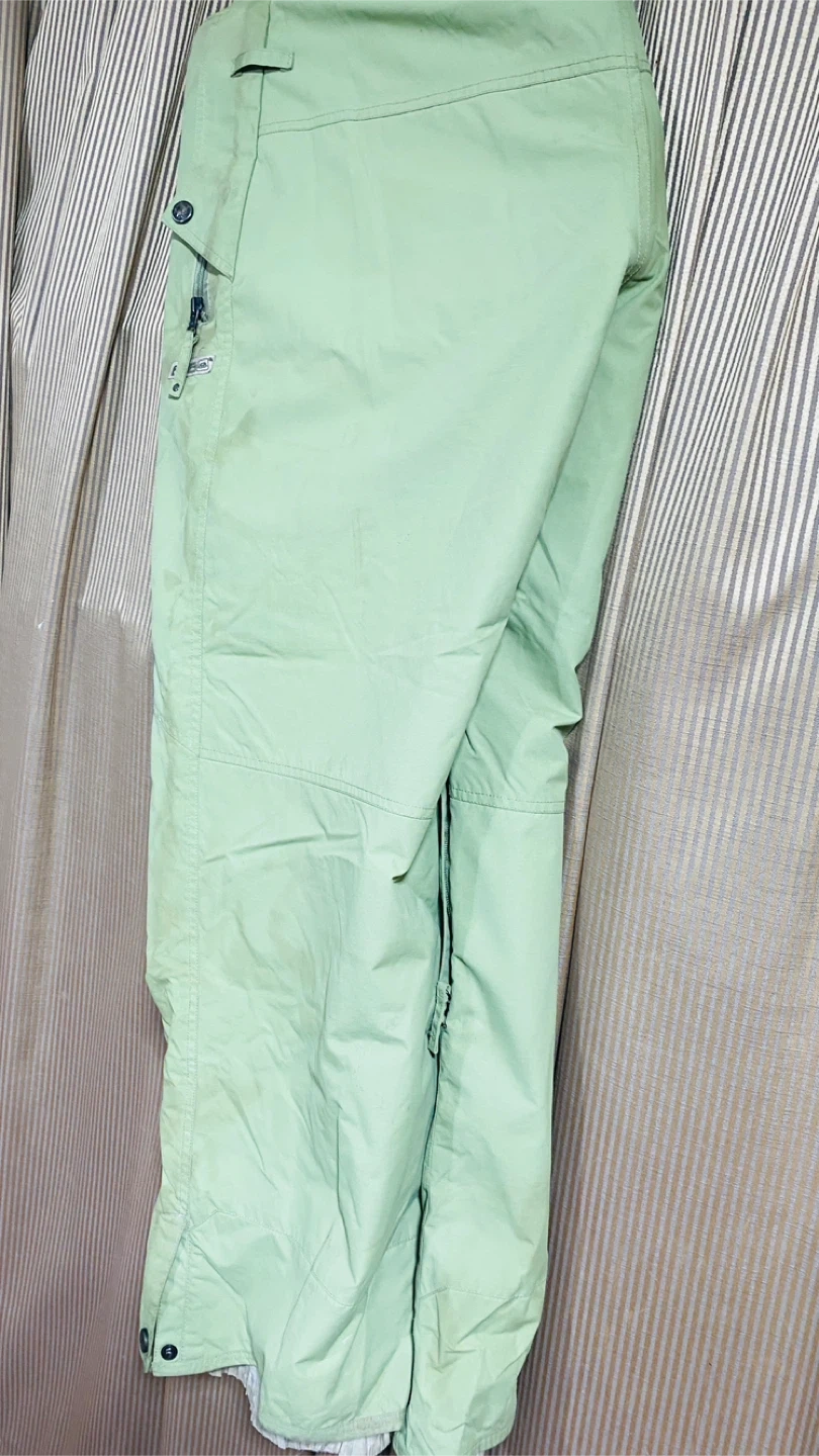 Selling a pair of 686 snowboard/ski pants in men's size medium. They are a light green colour and made from 100% polyester and 100% nylon. Perfect for hitting the slopes!