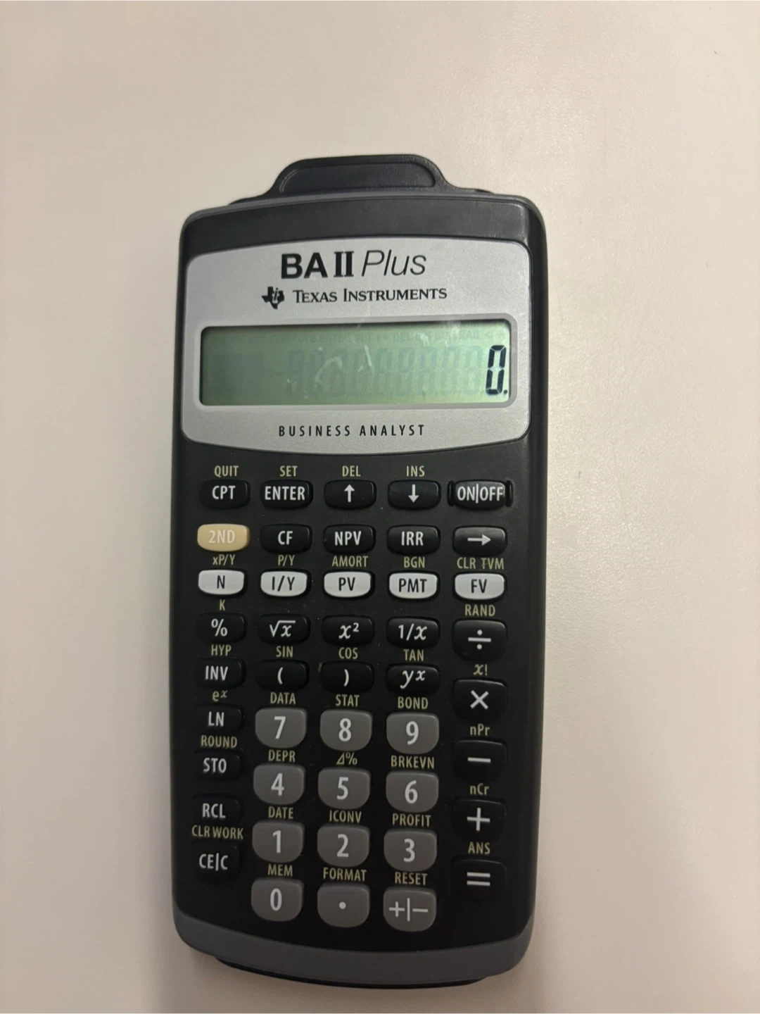 Selling a Texas Instruments BA II Plus business analyst calculator. Great for finance students or anyone needing a reliable financial calculator. Comes with a user manual including formulas