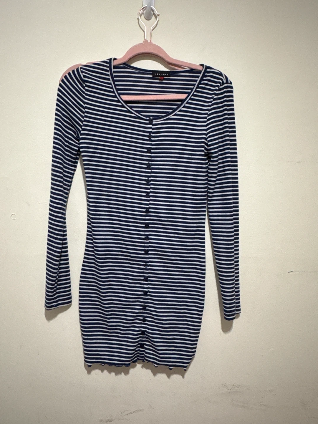 I'm selling a cute striped dress from Therapy! It's a size small and features a stylish striped pattern. Perfect for a casual day out or a night with friends