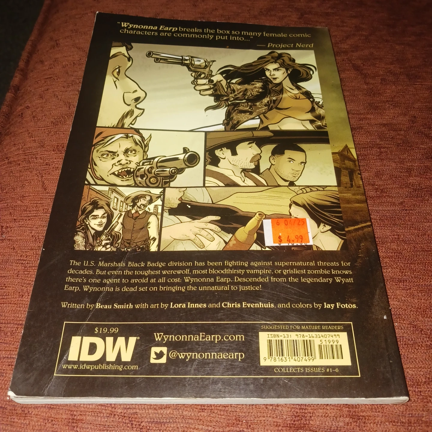Selling a copy of Wynonna Earp: Homecoming, a comic book written by Beau Smith! It collects issues #1-6. The U.S. Marshals Black Badge division has been fighting against supernatural threats for decades. Suggested for mature readers!